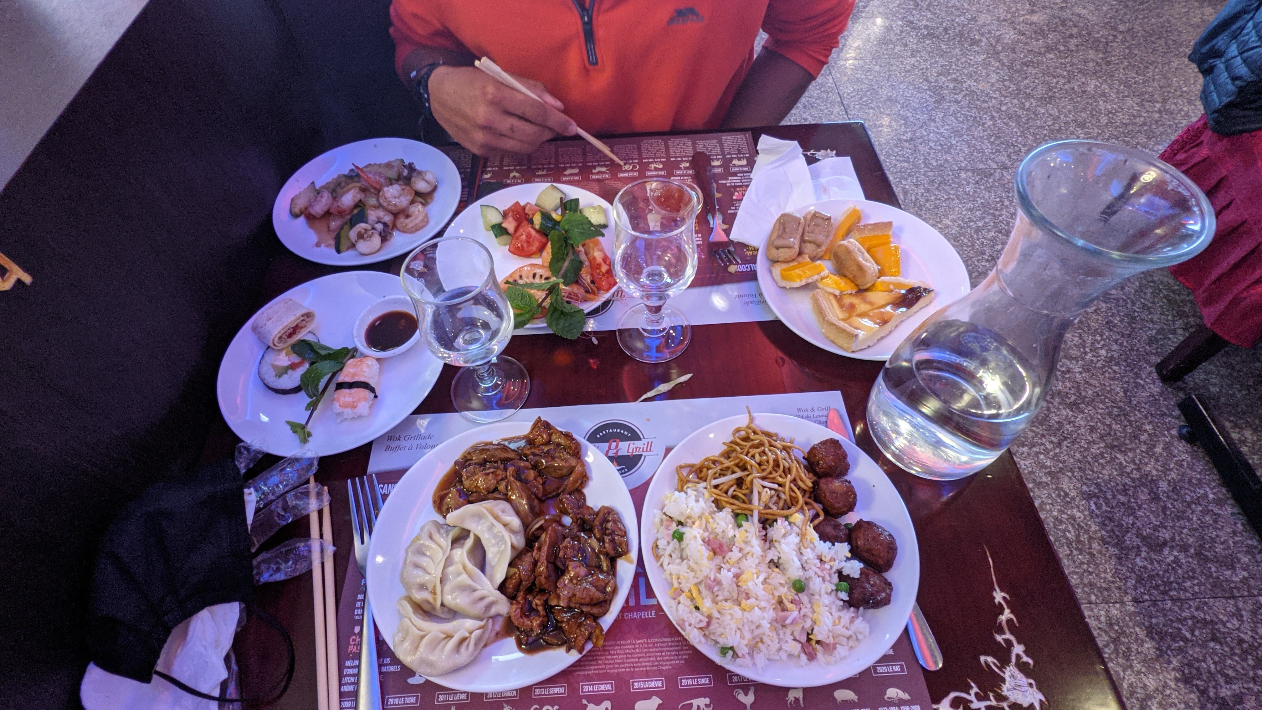 Nous sommes arrivées vers 20 heures, le buffet n’était pas vraiment rempli, les aliments étaient de mauvaise qualité (sushi à l’avocat avec un avocat pas mûr, canard pas bon, …), le wok était bon, mais assez de choix, assez déçu pour le prix payé, si vous n’avez jamais mangé dans les restaurants à volonté chinois, il existe bien de meilleure restaurant et au même prix, nous ne retournerons plus dans cet établissement.