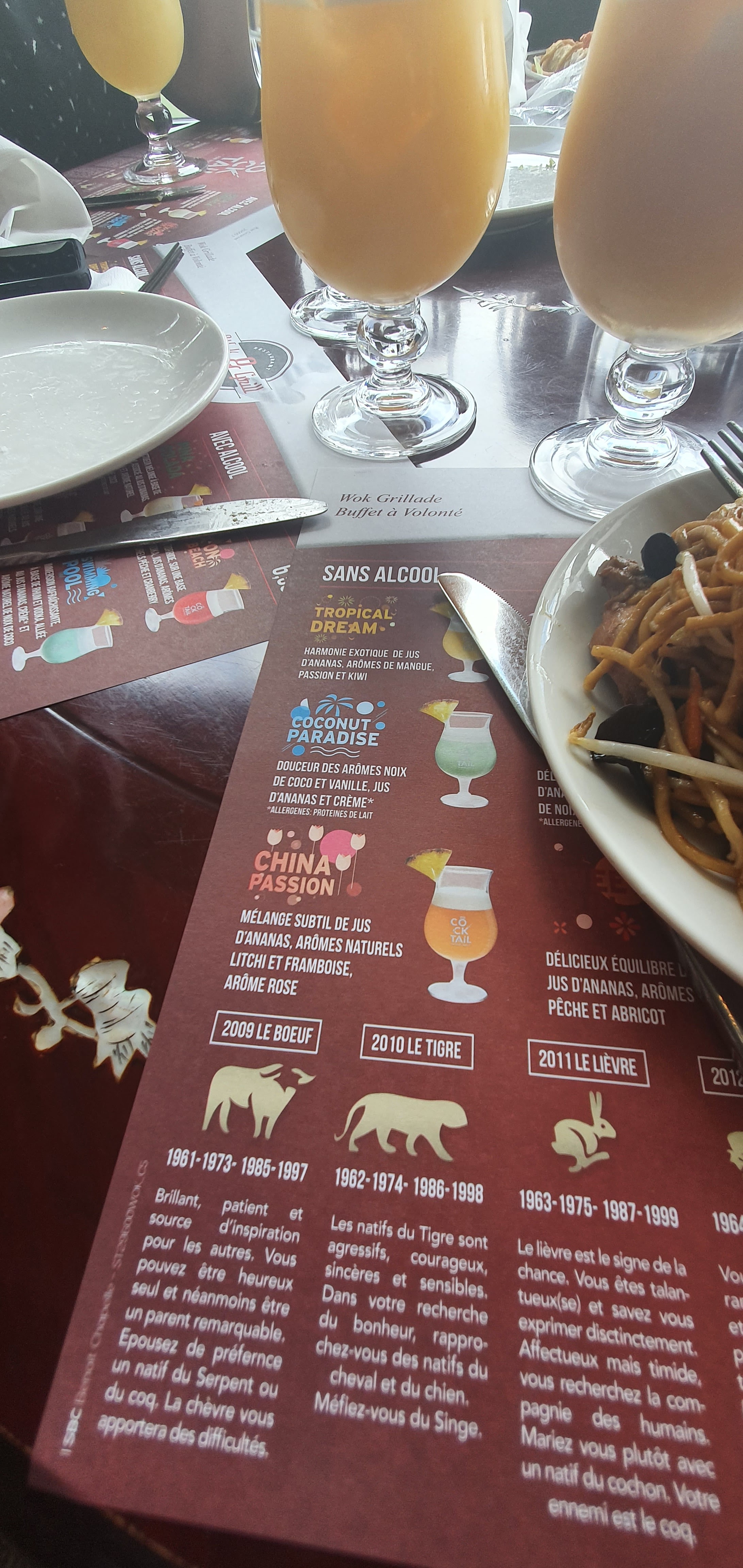 Très bonne cuisine. Self à volonté... J'ai particulièrement apprécié les légumes. Le vin était bon ( nous avons pris 1 demi bouteille de Gamay . Nous nous sommes laissées tenter par un apéritif : le Zombie, excellent. À la fin du repas , nous n'étions pas des zombies , ni l'une ni l'autre !!! Pour ma part , je me suis sentie en pleine forme . Je recommande les rouleaux de printemps. Le personnel est très sympathique. Tout m'a plu. Je recommande vivement les restaurants asiatiques en général.