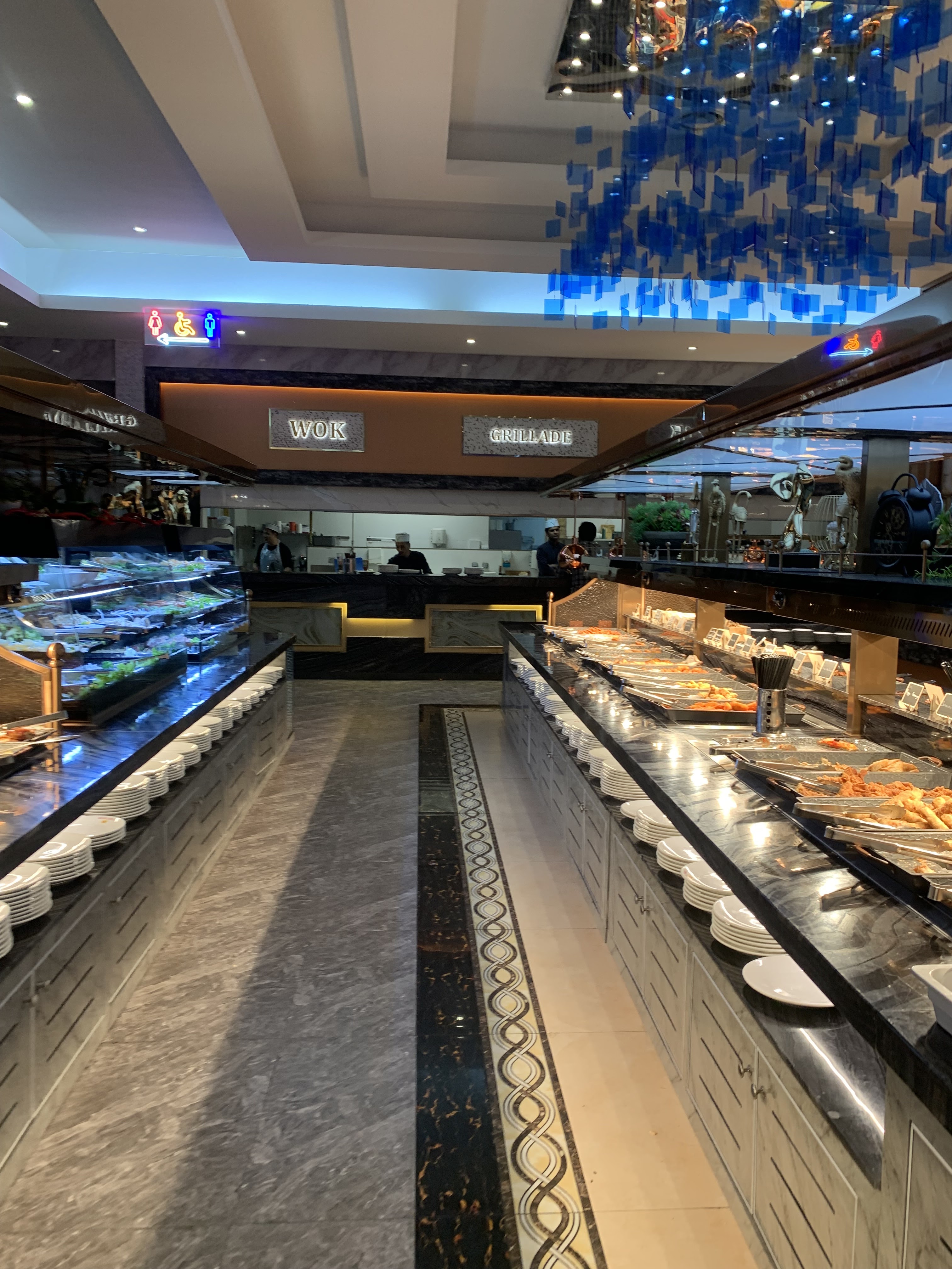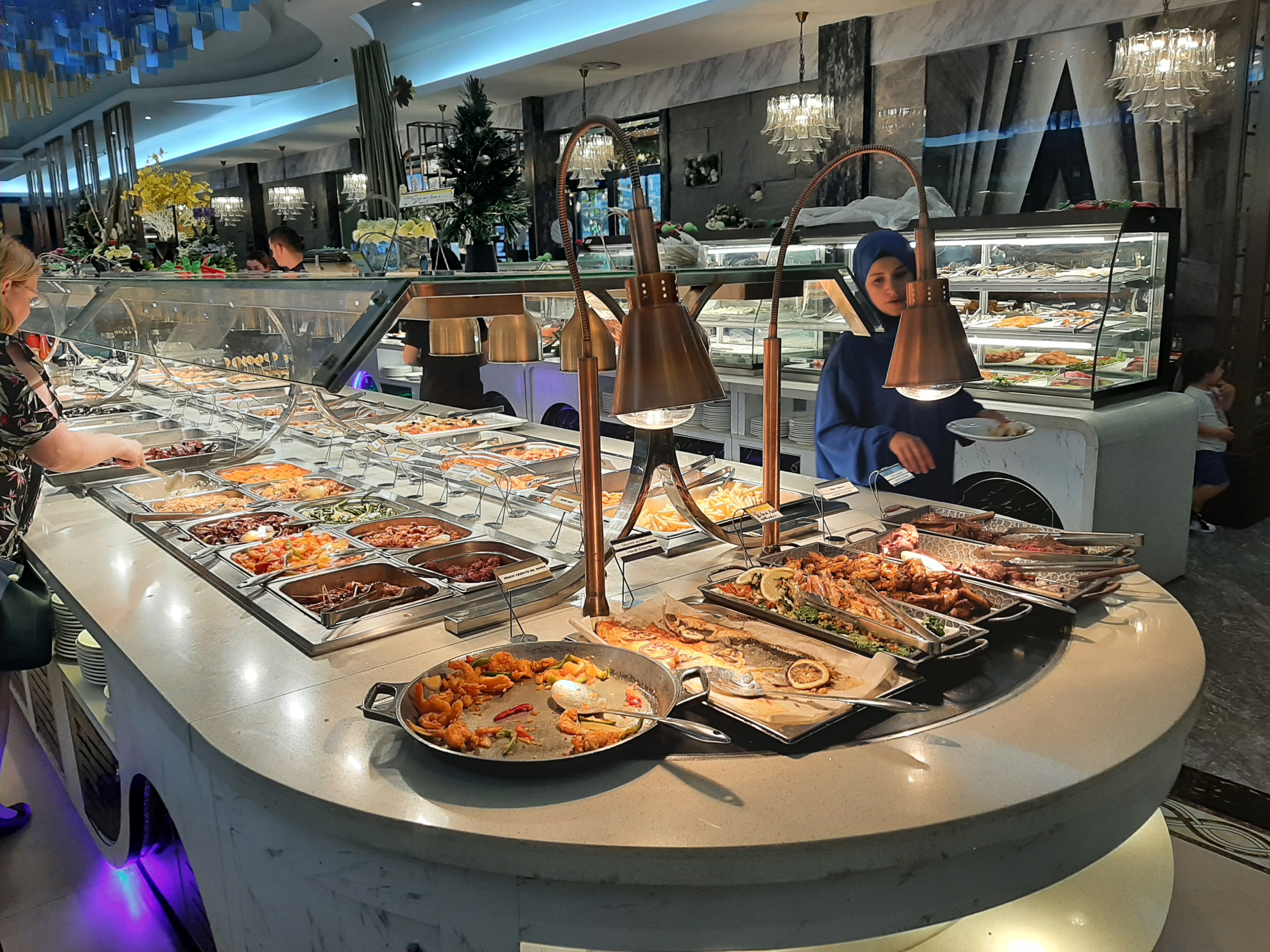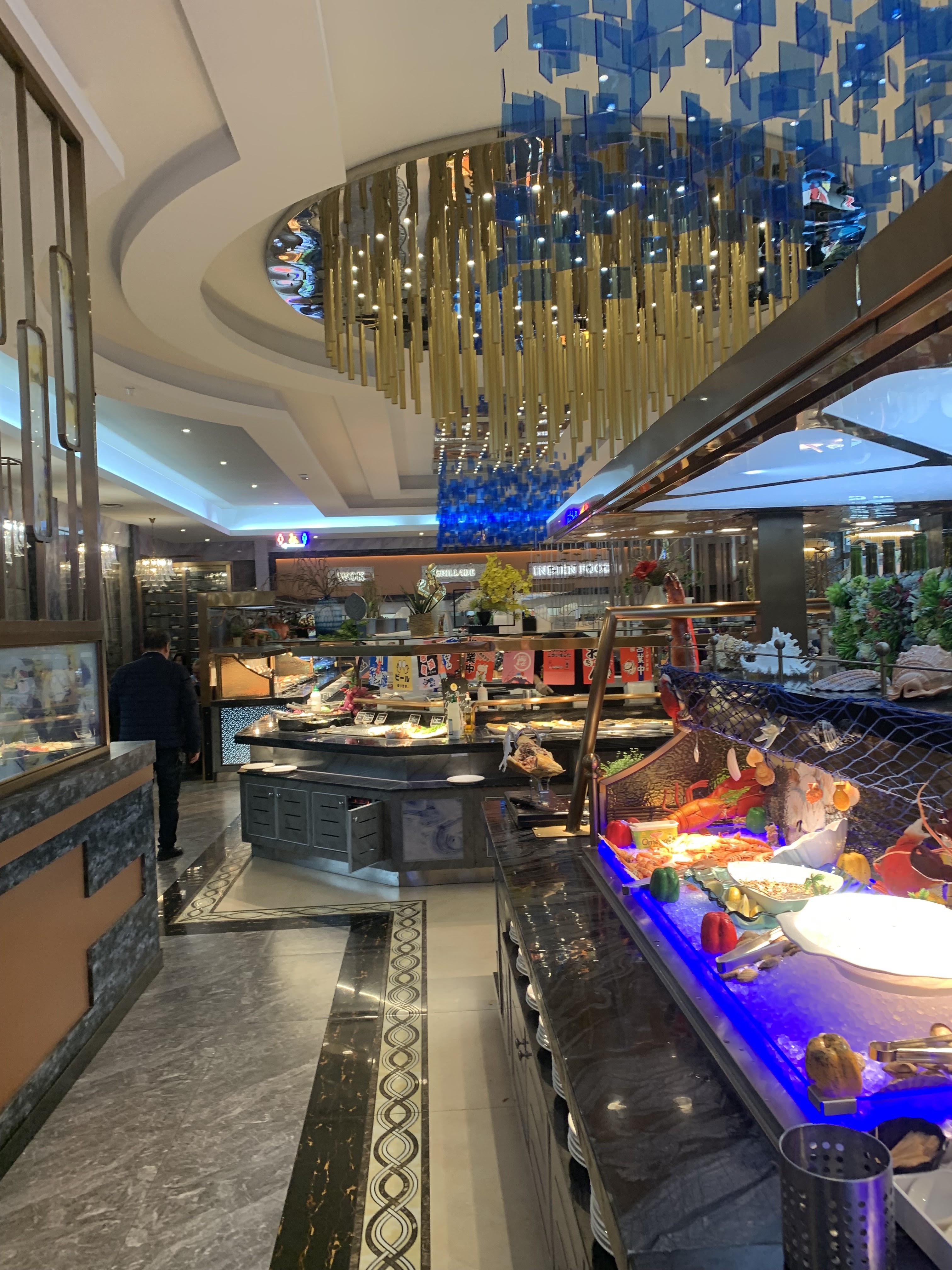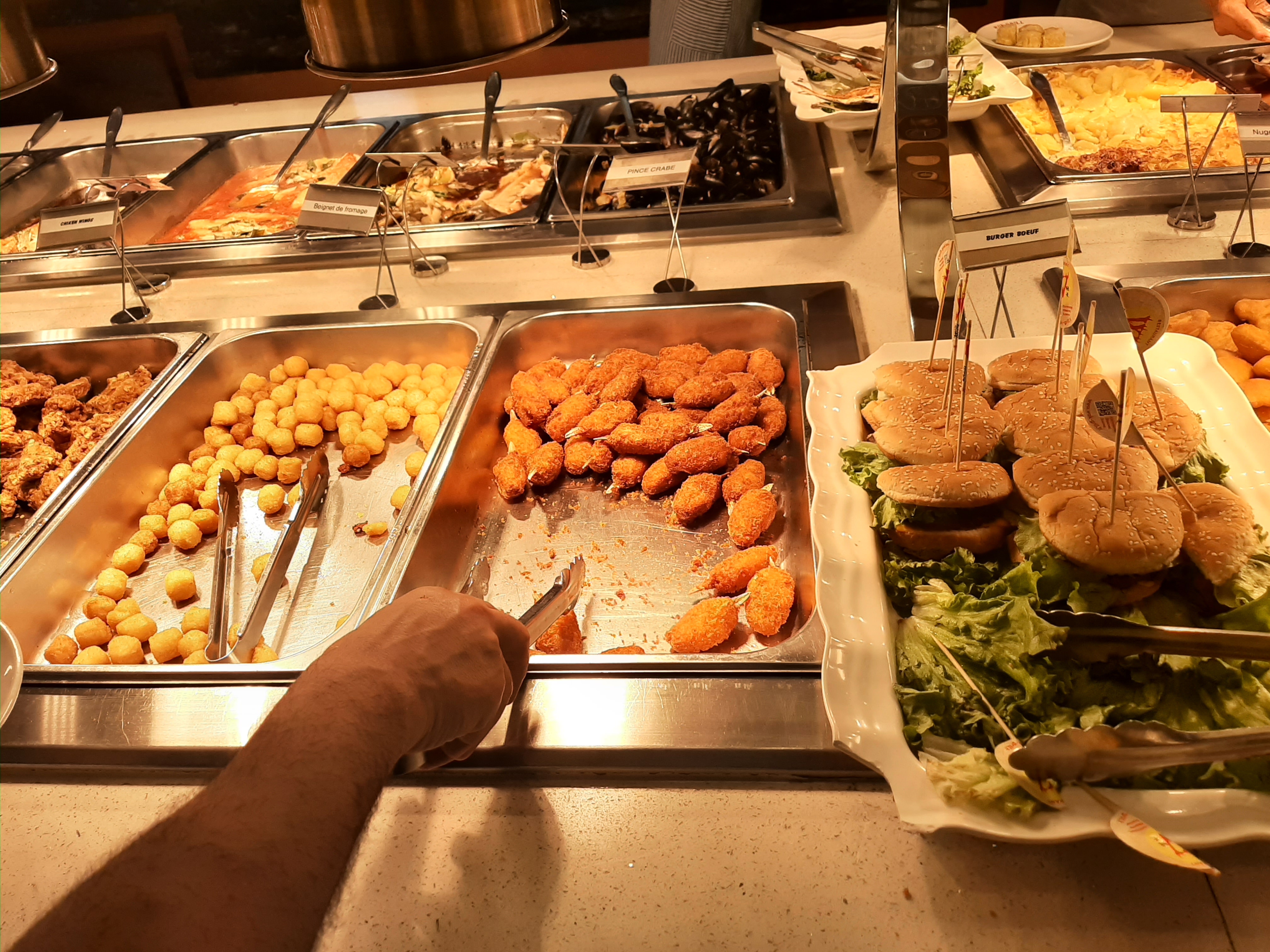 Restaurant avec formules buffet à volonté ou menus à emporter. Les tarifs varient en fonction du jour, matin et midi. Il y a un très grand choix de plats européens, asiatiques : nems, sushis, yakitoris, tourteaux, huîtres, moules, poissons, couteaux, salades, ... Grand choix de desserts : tartes, glaces, fruits .. On peut aussi se faire préparer : gambas, viandes etc.. La quantité et choix sont là, mais pas toujours la qualité.