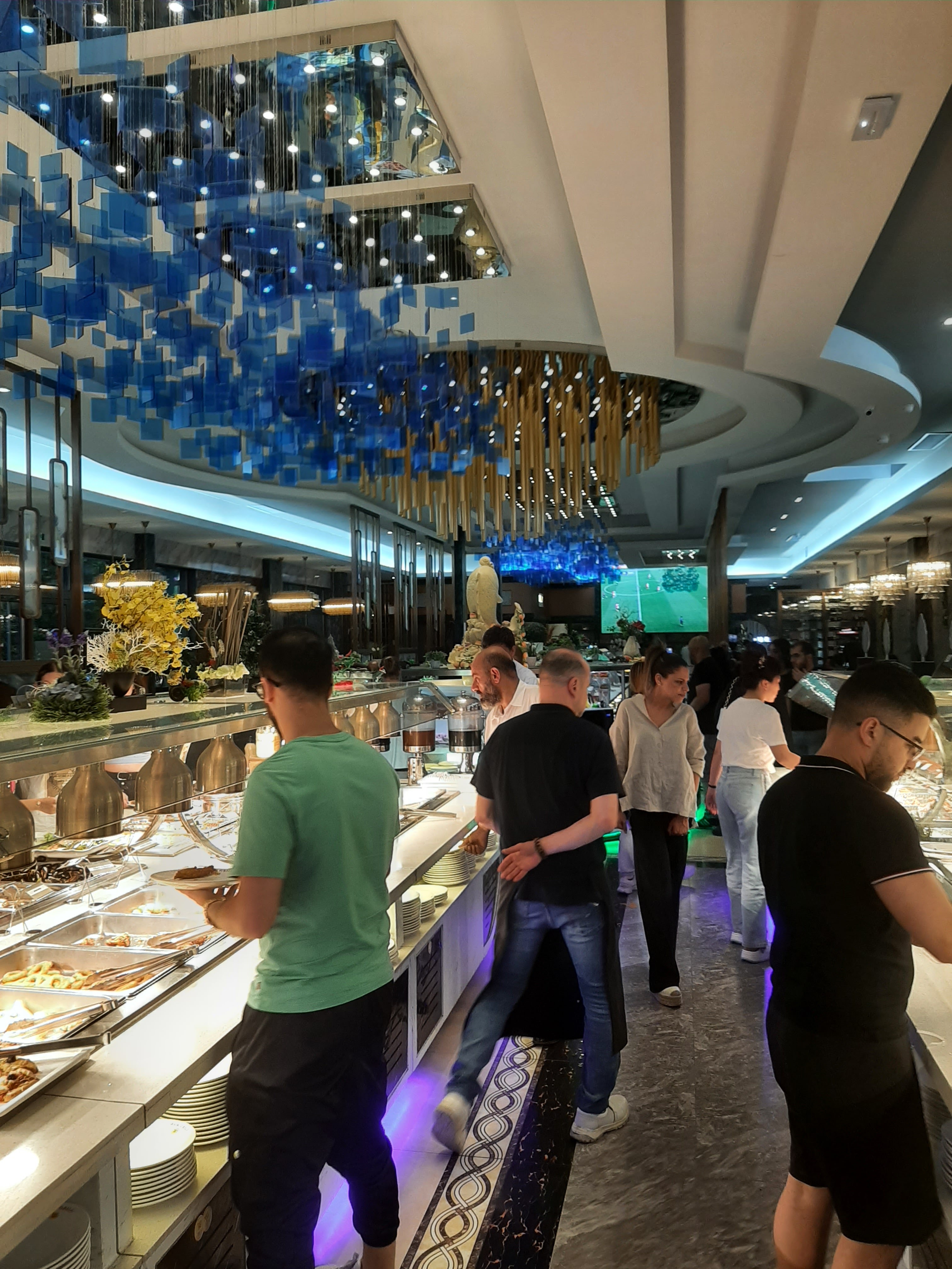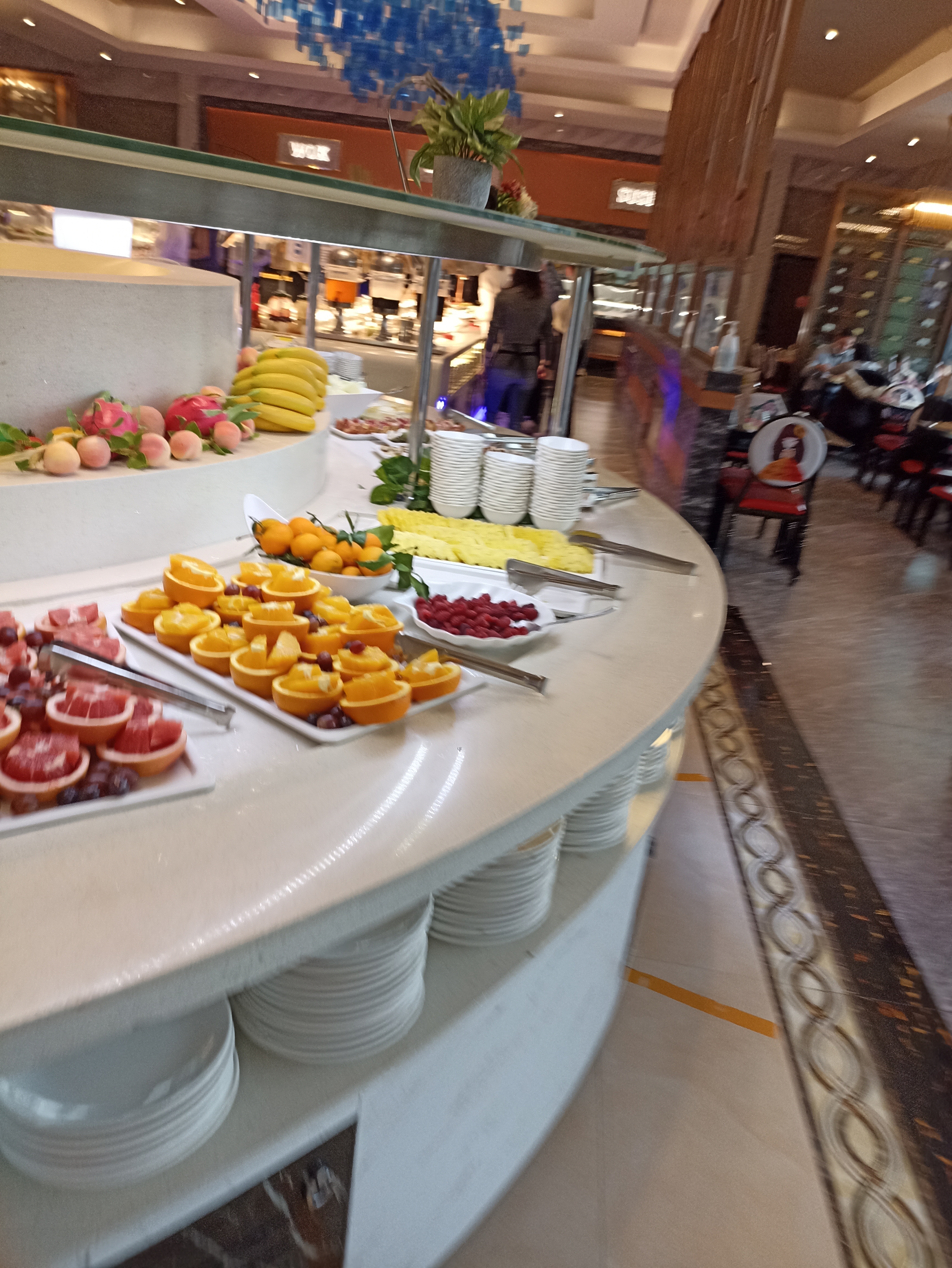 Énormément de choix, restaurant très grand. Le midi en semaine forcément bien plus calme car un peu moins de monde. Quand il y a énormément de monde, résonne pas mal. Des plats sont encore ajoutés pour le week end. Tout ce que j'ai pris, était plutôt bon, ça fait 3 fois que je viens dans ce restaurant. Les prix sont dans la tranche des buffets asiatiques.