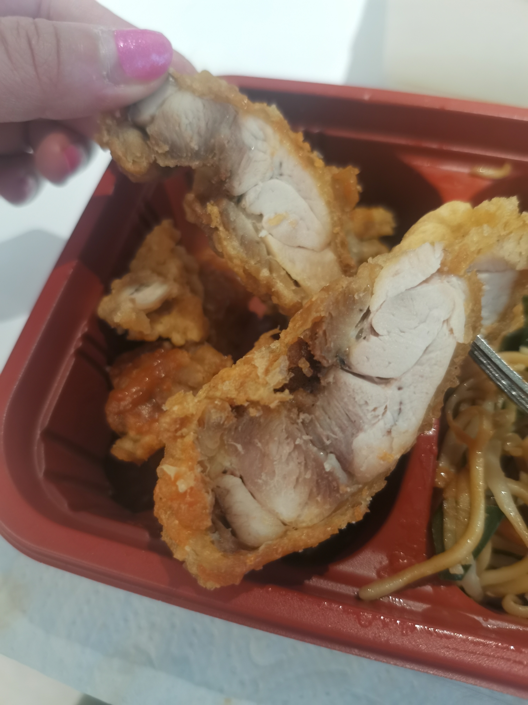 J'ai commandé pour déjeuner par Delivroo car le restaurant était plutôt bien noté. J'ai pris des nems au poulet avec un menu contenant des nouilles et du poulet croustillant. Les nems et les nouilles étaient bonnes mais le poulet était tout simplement immangeable. Il était extrêmement sec, impossible de croquer dedans. Franchement décevant. Même si les nems et les nouilles étaient bons, cela amène à douter de la préparation et de la fraîcheur des aliments. 16€ qui vont aux poubelles. Je ne recommande pas cet établissement.