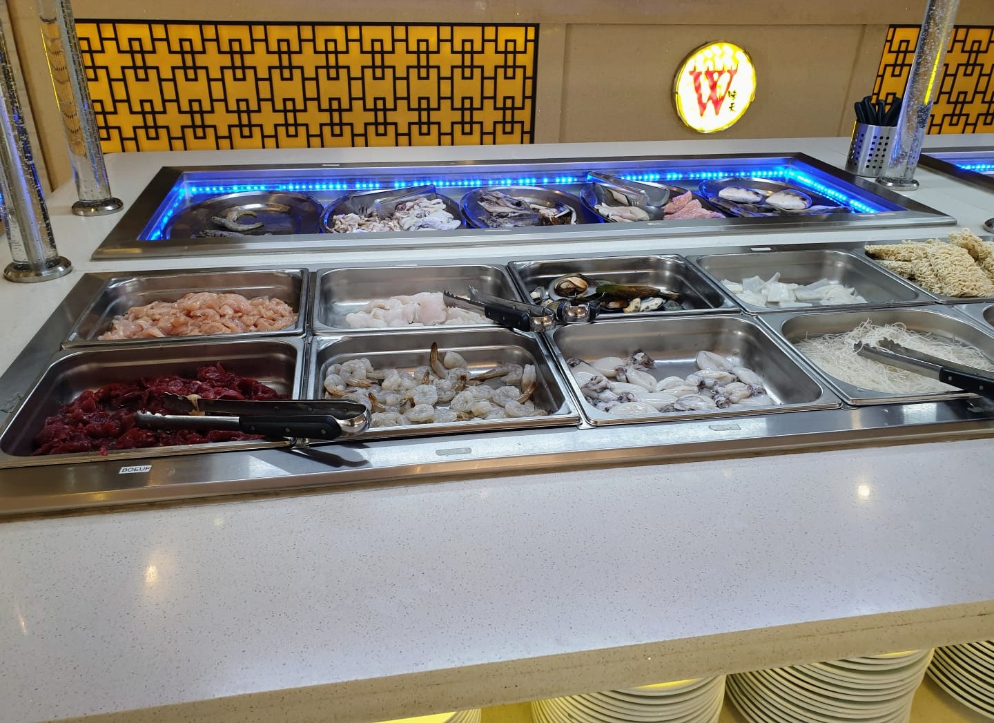 Beaucoup de choix en fruits de mer et viandes. Pas sûr que la viande soit halal. Malheureusement, certains plats n'ont pas été re remplis.