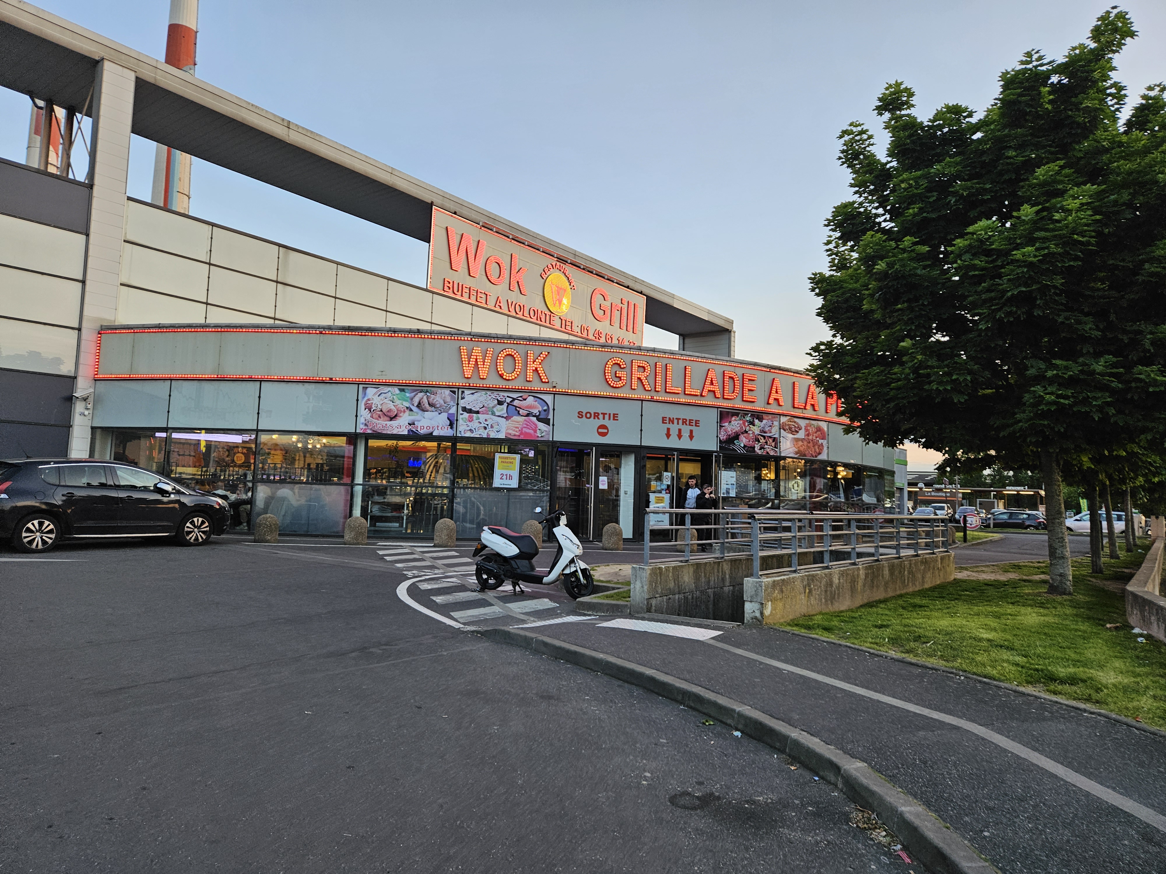 Extrêmement cher le soir et surtout le week-end 27,90€ le soir, l'exploitant pense qu'il est seul dans le secteur qu'il a le monopole ! Il y a un wok grill à Viry Châtillon à -15mn il est à 22,90€ le soir week-end et jours fériés, il y a 5€ en moins c'est énorme. À éviter le wok grill de Vitry ils ont augmenté leurs prix 3 fois en moins d'un an, avant 19,90€ et maintenant 27,90€ gardez vos repas surgelés, c'est sale entre les compartiments des buffets ! Alors qu'ils courses sont juste en face E.leclerc et maintenant Lidl encore beaucoup plus près ! C'est abusé ! Et quand on voit le chariot avec les assiettes et le reste de nourriture qui passent entre les tables eux non c'est très dégueu... donne pas envie de venir manger c'est les assiettes qui vont vers la plonge et non la plonge qui vont vers les tables, que les clients voient la plonge circulent entre les tables pour récupérer les assiettes sales ! Je suis allé mangé le 01/09/2022 car on m'a dit c'était bon, non pas du tout toujours aussi cher 25,90€ du lundi à jeudi soir, le midi 20,90€. Le buffet était froid, fade sans goût, les desserts très peu de choix au niveau des bonbons, tout le monde laisse les couverts ouvertes pour les viandes crues, et les mouches se font plaisir d'y aller, les toilettes toujours aussi sales. Côté wok ce n'est pas encore ça on était à 8, on a eu tous le même verdict ce n'était pas bon du tout au vu du prix ça ne vaut même pas 15€ le soir ! Les gens qui ne connaissent pas la gastronomie, l'art culinaire, une vraie viande bien mariné sous le palet disent tous c'est bon alors que non bien au contraire. On a vu des mouches volaient autour des viandes crues et des sushis car les gens ne fermaient pas les couverts pour garder la fraîcheur et empêcher les nuisibles de rentrer ! Ça ne vaut même pas 13€ leur buffet, les non connaisseurs y vont car ils ne connaissent pas d'autre !