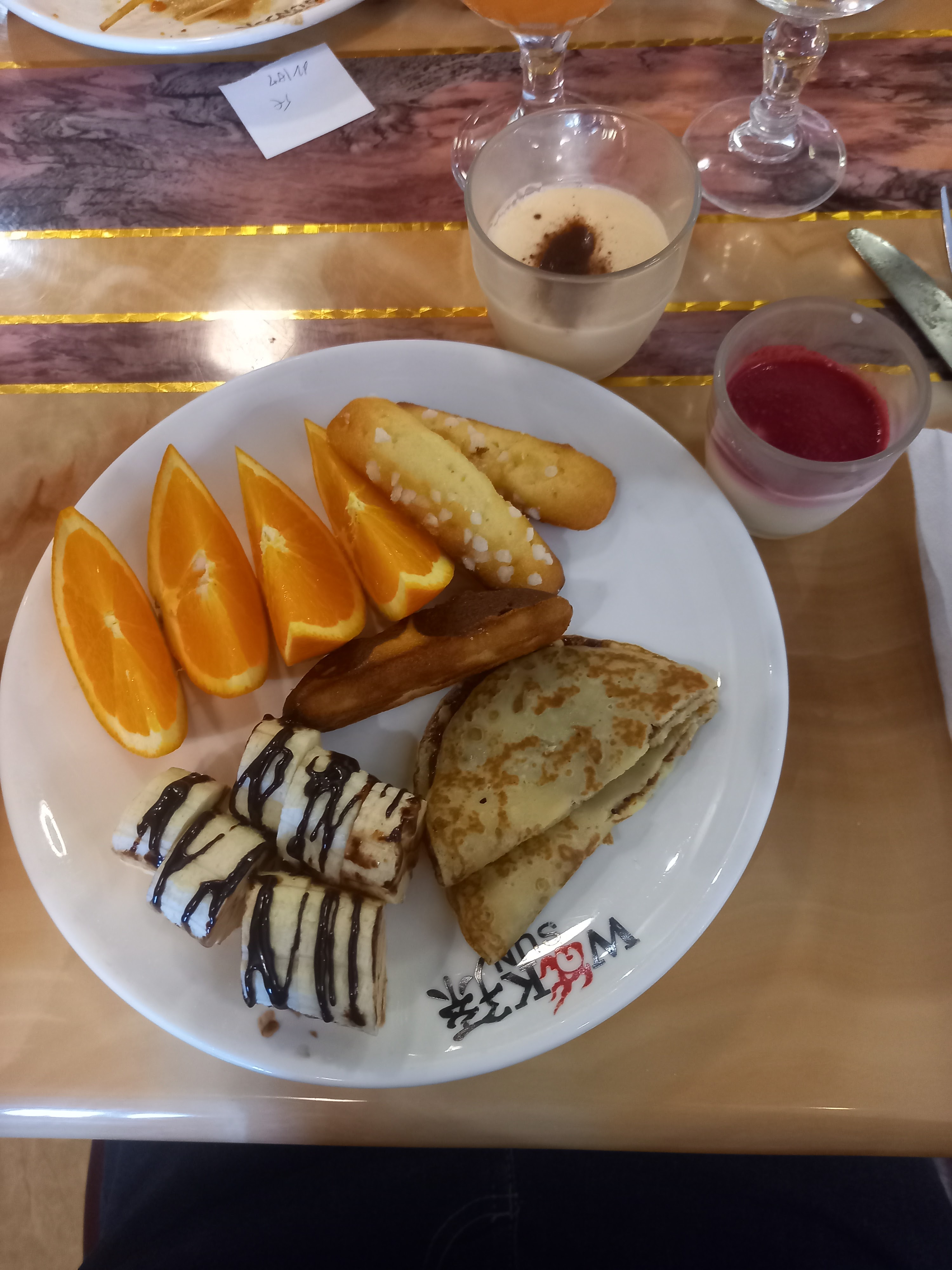 Le restaurant es propre et l accueil es sympa. Les desserts sont bon. Maintenant si t aime le bœuf ou l agneau servi en brochette parfois tout à le même goût...je me demande quel genre de viande c'est.... Ça a le goût de..... rien 😂 et pourtant nous ne somme pas difficile. Le wok 🤪 c est long tellement long puis vraiment pas génial. Il y a du bon et du moins bon. Cela dépend des goûts.