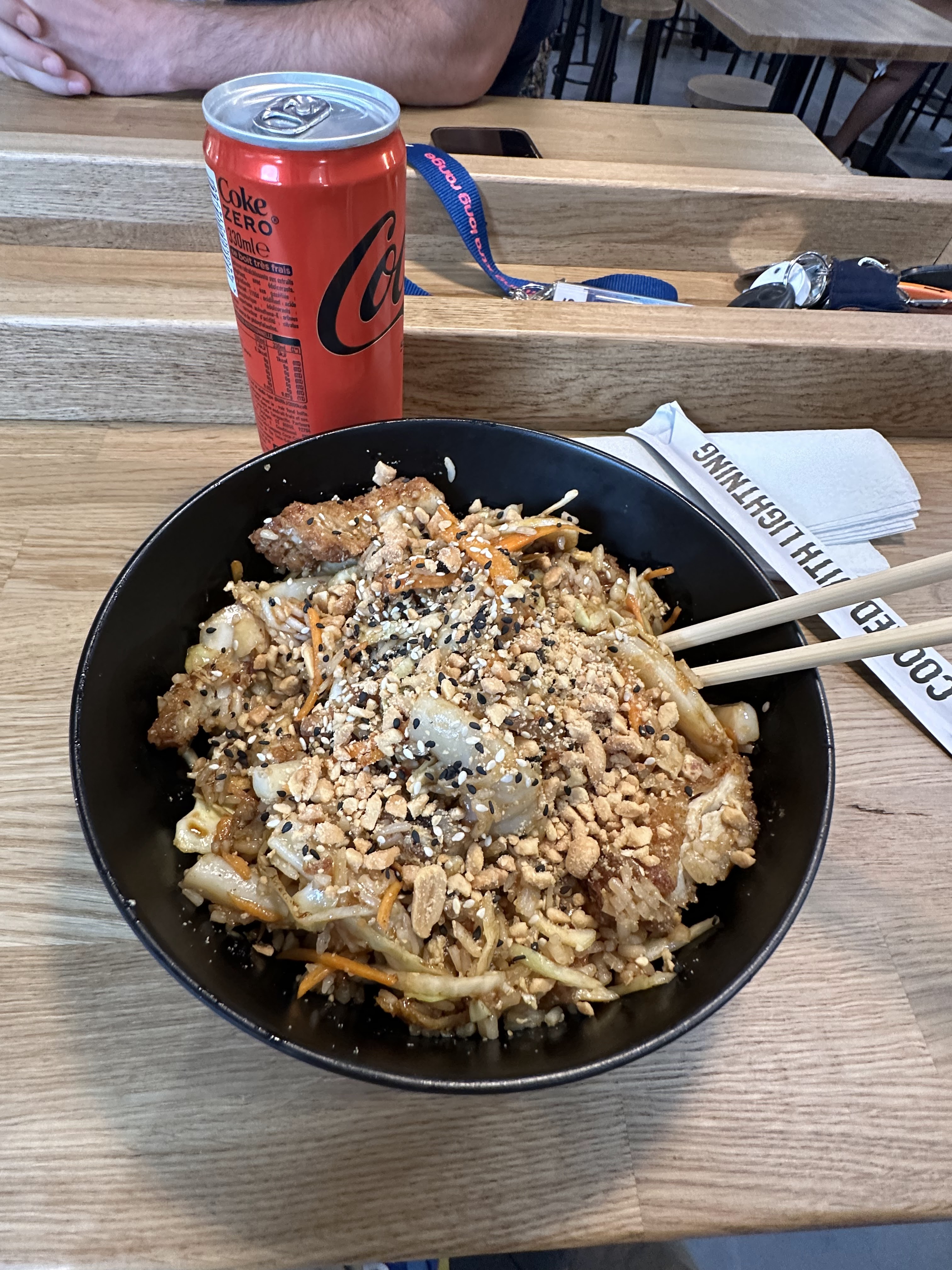 Entre deux, j'y suis allée avec mon conjoint une première fois il y a quelques temps déjà, nous nous étions régalés. En revanche nous y sommes retournés et grosse déception. Nous avons pris à emporter, dans mon pad thaï il manquait un ingrédient et le plat avait l'air cuit et re cuit...c'était très élastique. En revanche attention à l'hygiène ! Ce soir la personne qui servait s'est pris un cookie l'a mangé devant nous, puis a mis ses mains dans le poulet pour la préparation suivante...(Mettre ses mains à la bouche puis toucher la nourriture sans se les être lavées....pas très hygiénique avec les germes).