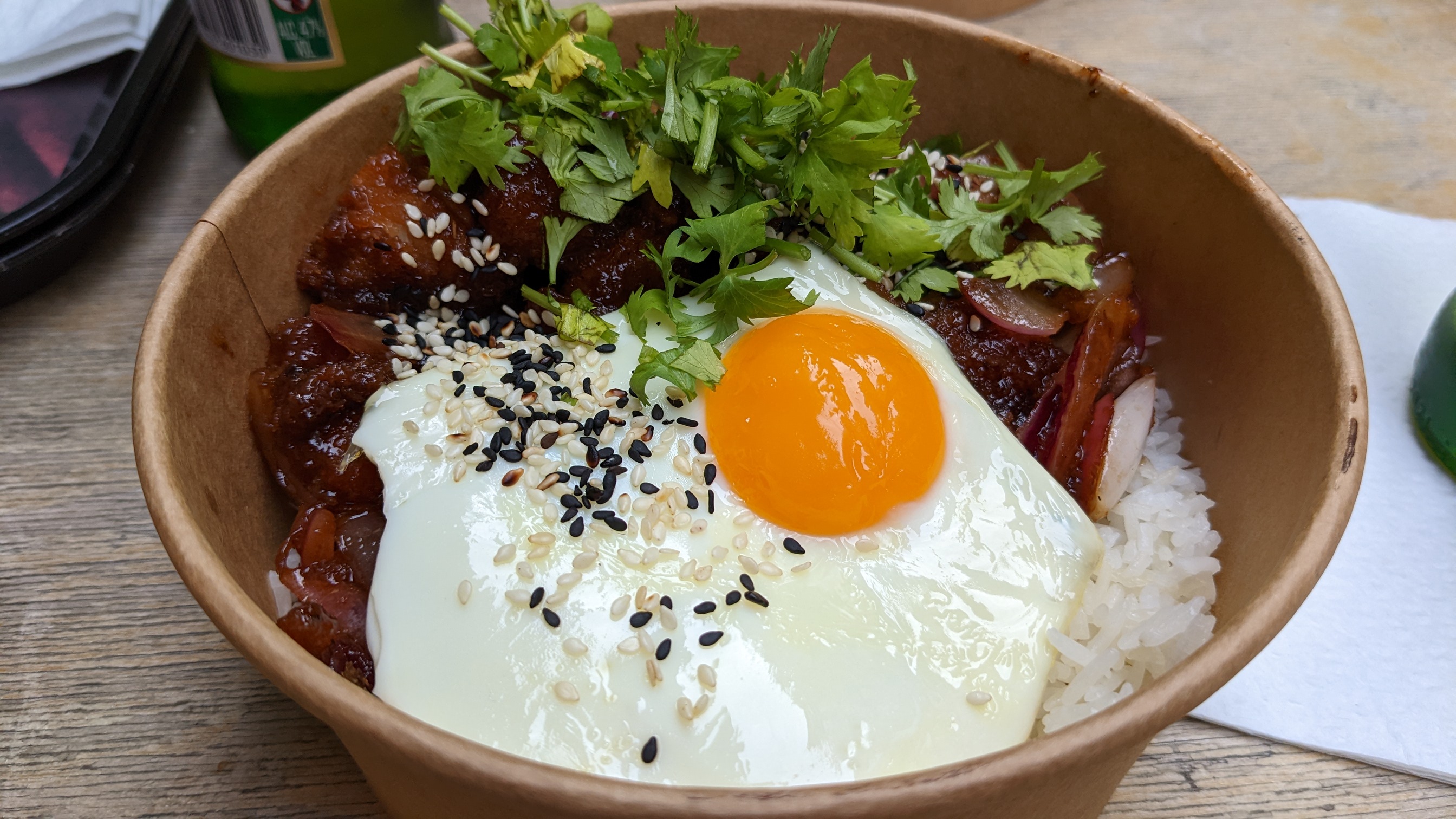Un endroit idéal pour un déjeuner rapide. Fraîchement préparé pendant que vous attendez. Nous avons eu le donburi au poulet. Bien. Et cela pourrait être encore meilleur avec l'ajout d'un peu d'épices.