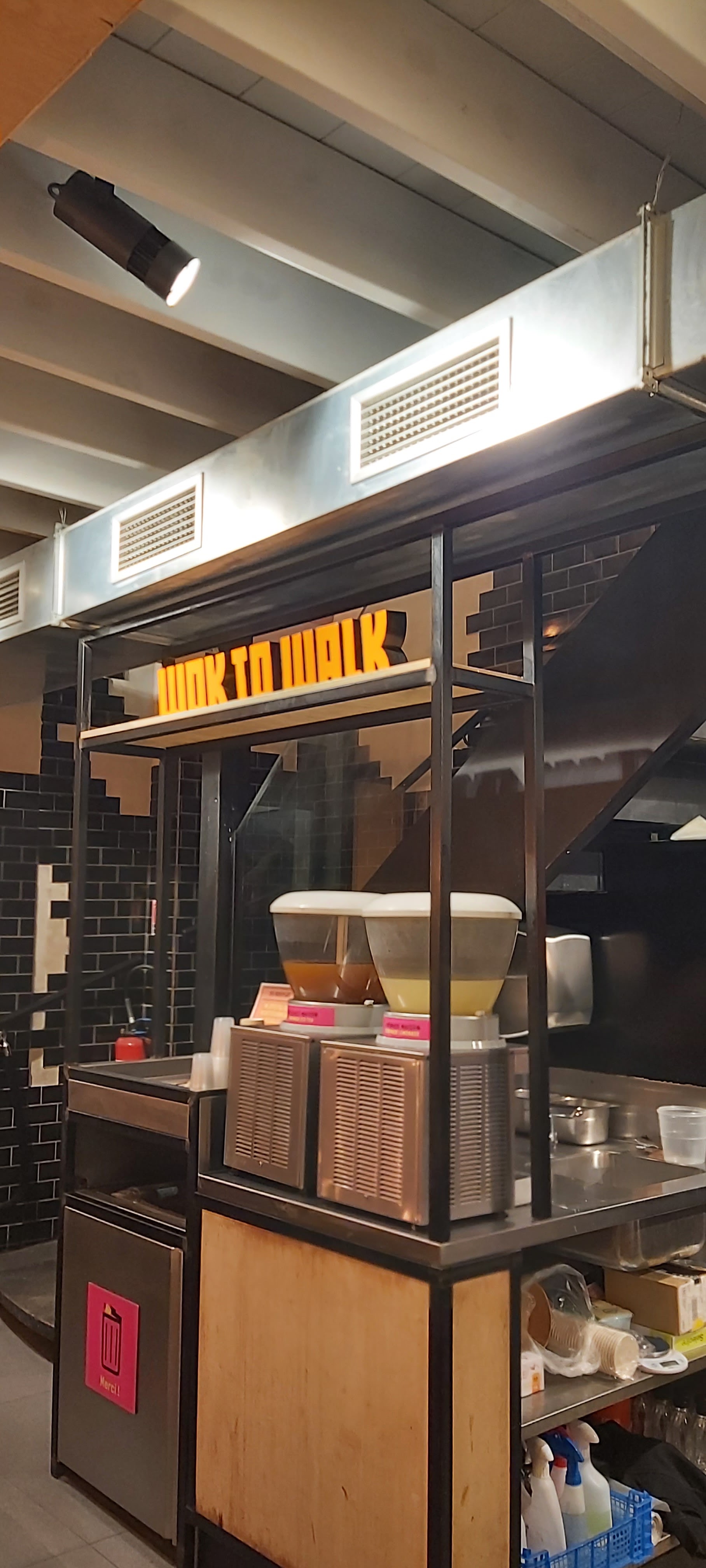 Bien moins quali, que celui de St Catherine. Autant dans la nourriture que dans le service. On a bien compris qu'on ennuyait la jeune femme, qui a passer 5min à nous regarder au travers de sa frange sans denier nous adresser la parole pour commander. Obligé de lui demander, de prendre notre commande. Du jamais vu. Le wok manquait de sauce en plus... Les pâtes trop cuites... Je suis une adepte du Wok to Walk de la rue St Catherine, je ne connaissais pas celui ci, mais je n'y retournerai certainement pas