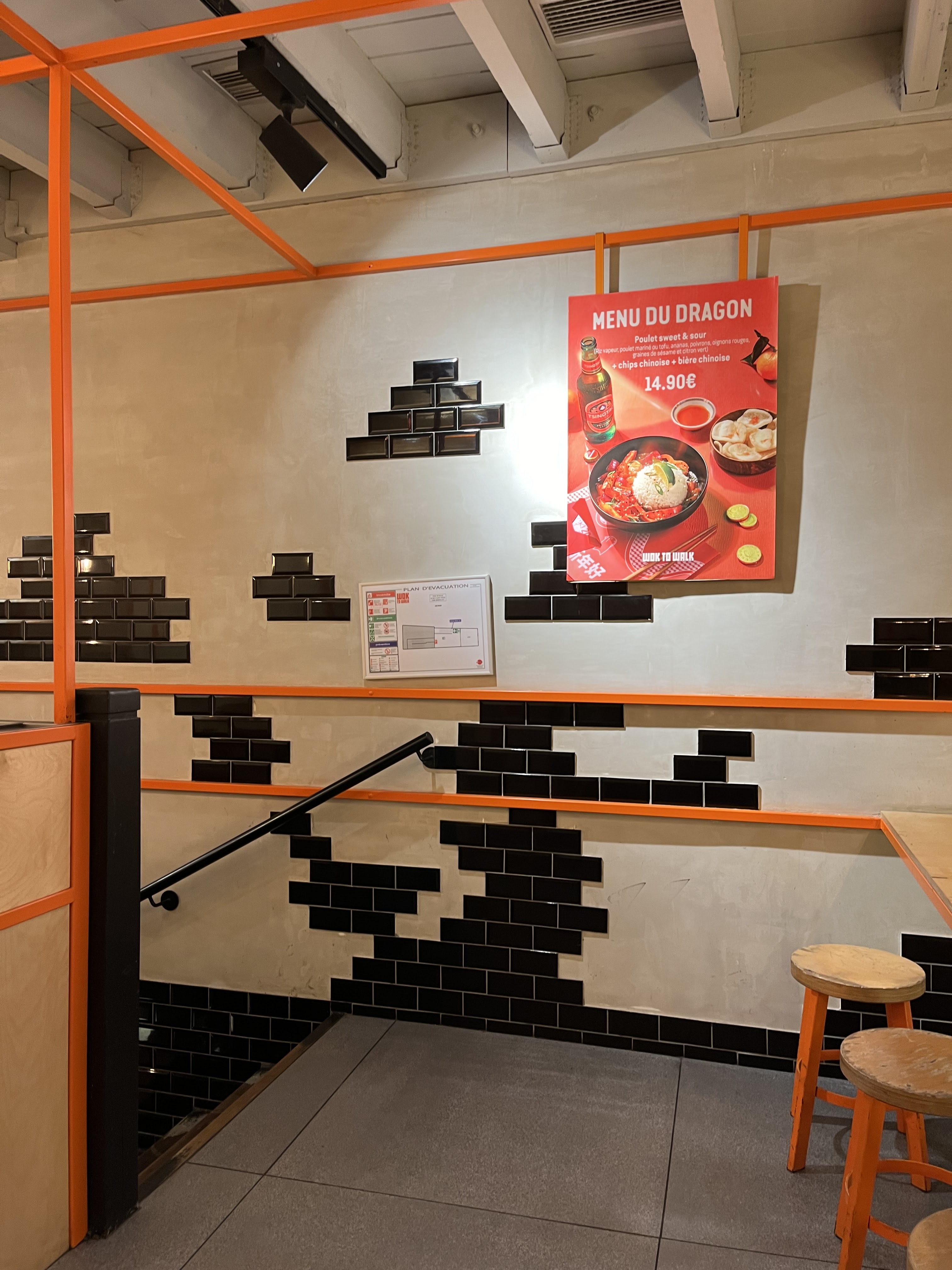 Très bon concept de nourriture asiatique au wok fait minute. Rien à dire niveau nourriture, c'est goûteux et copieux. Prix raisonnable 10 euros. Par contre obligé de vous enlever une toile à cause de la saleté du plafond à l'étage, moisissures et toiles d'araignées. Aussi je suis arrivé à 11h37 un lundi, vous étiez pas prêt, vous m'avez servi à 11h55.