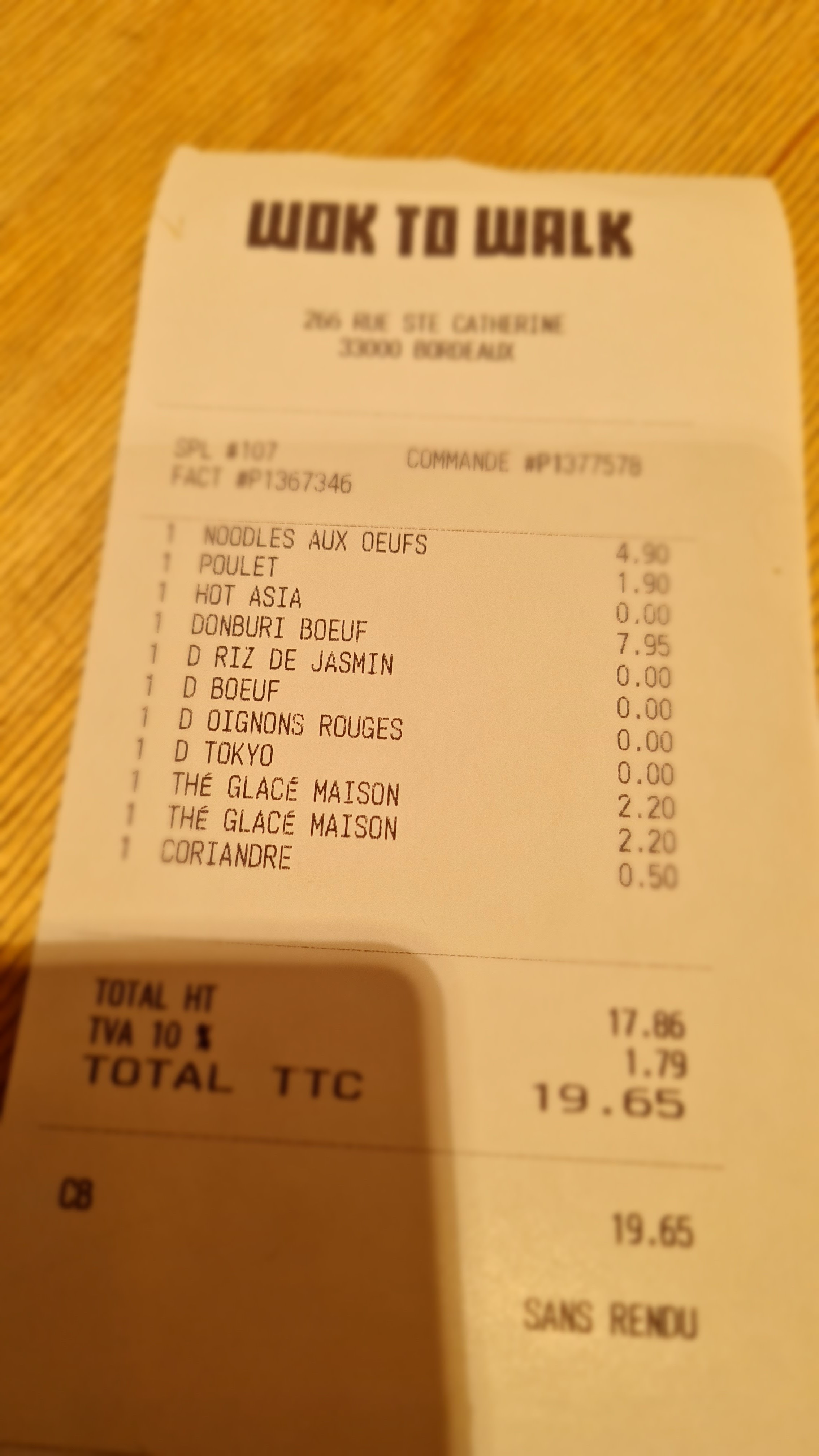 J’ai découvert Wok to walk à mon arrivée à Bordeaux en 2018 et depuis j’ai toujours été une fan inconditionnelle. Mais depuis peu je contaste que la qualité des produits ont changés. Les morceaux de poulet sont devenu plus gras qu’avant. J’ai trouvé un énorme morceau de peau dans ma box et moi qui ne mange que du blanc de poulet, c’est rédhibitoire, impossible de finir ma box. Je suppose que l’inflation en est la cause et je peux comprendre que chacun fais ce qu’il peut pour s’en sortir. Malheureusement ce soir est mon dernier repas chez vous. Merci de m’avoir régalé ces 4 dernières années 🙏🏼