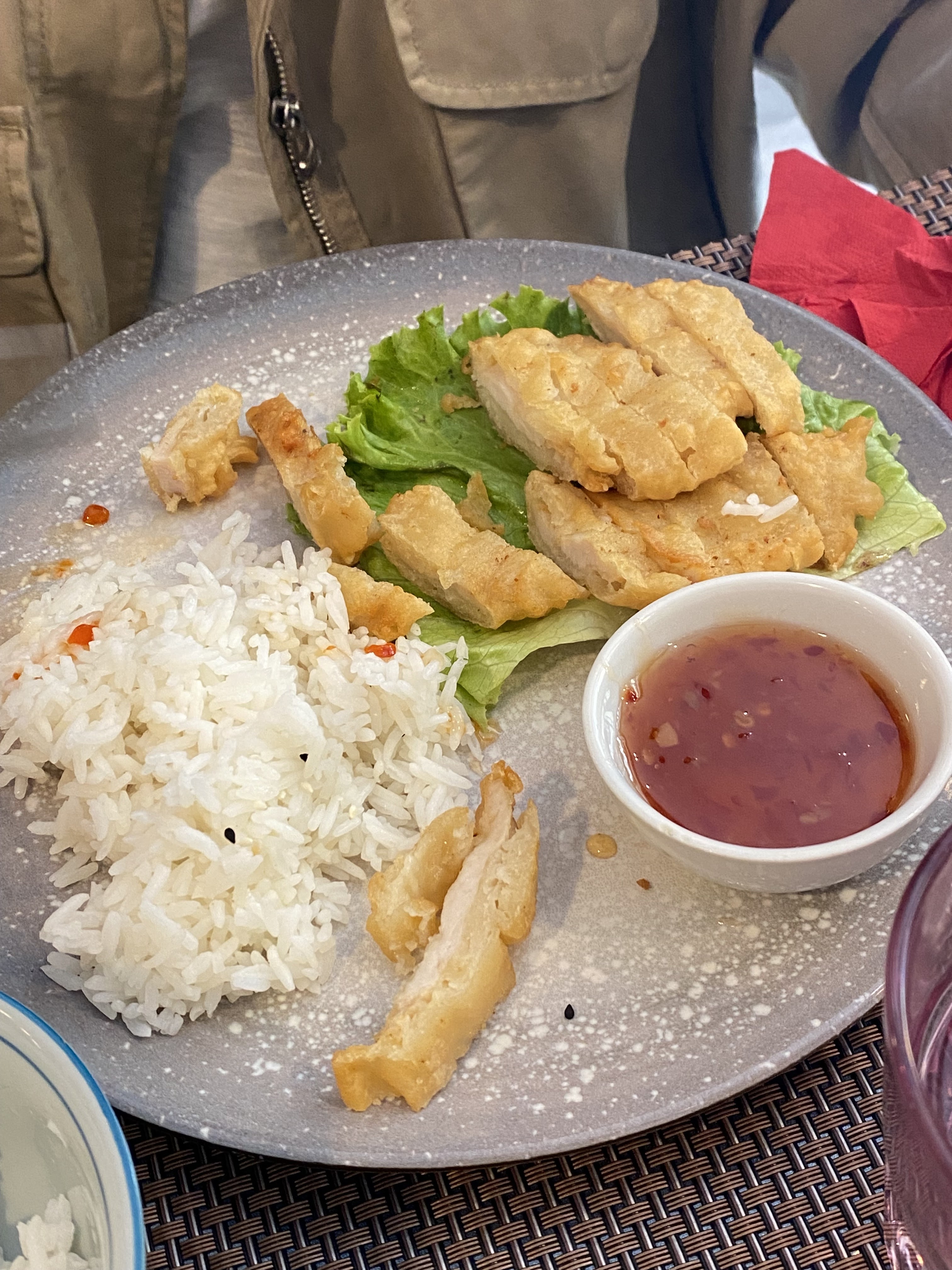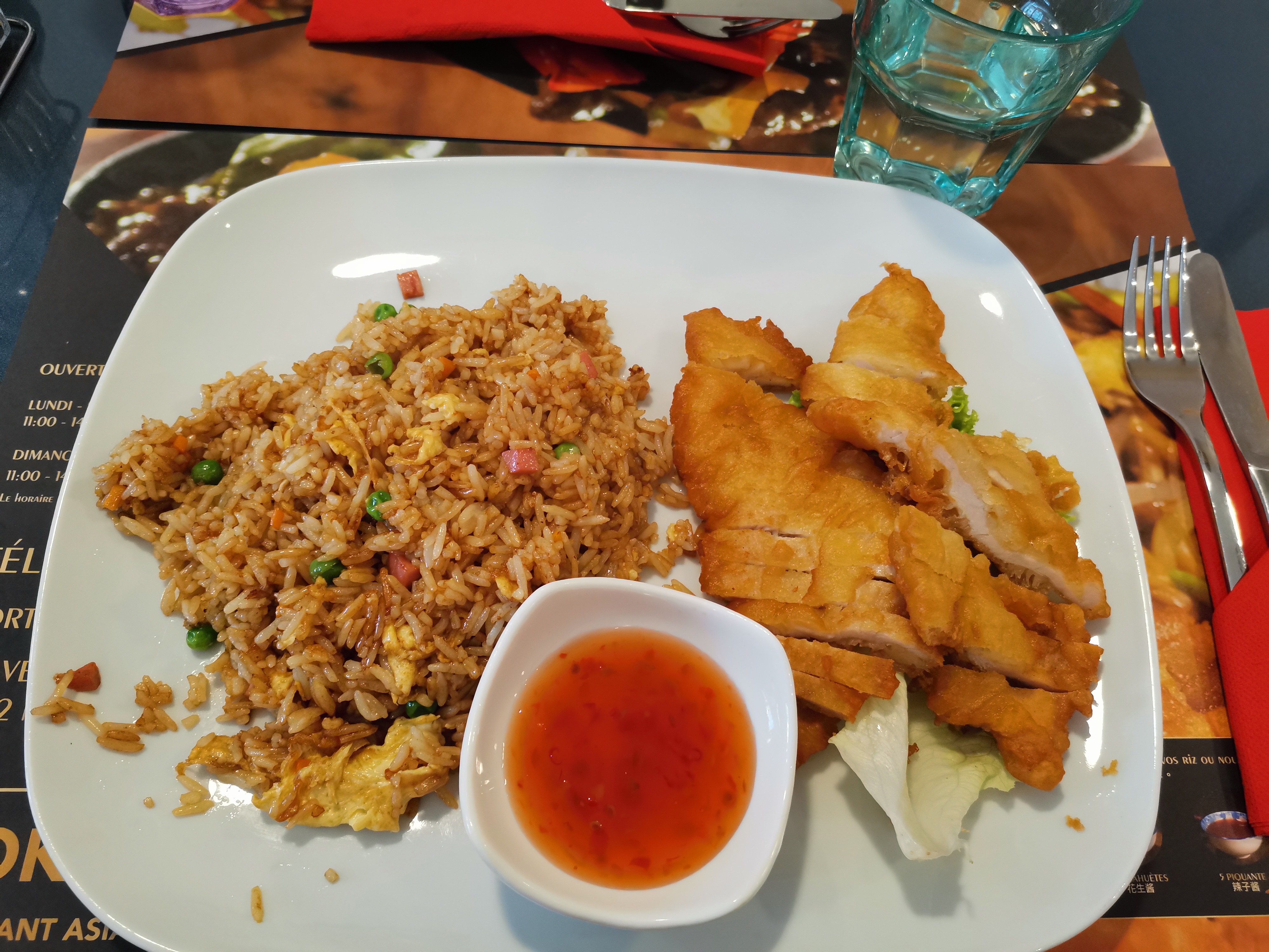 Ouah. Délicieux. Le poulet au four est cuit dans une pâte à la bière, comme je le connais en Allemagne. Meilleur asiatique de France !
