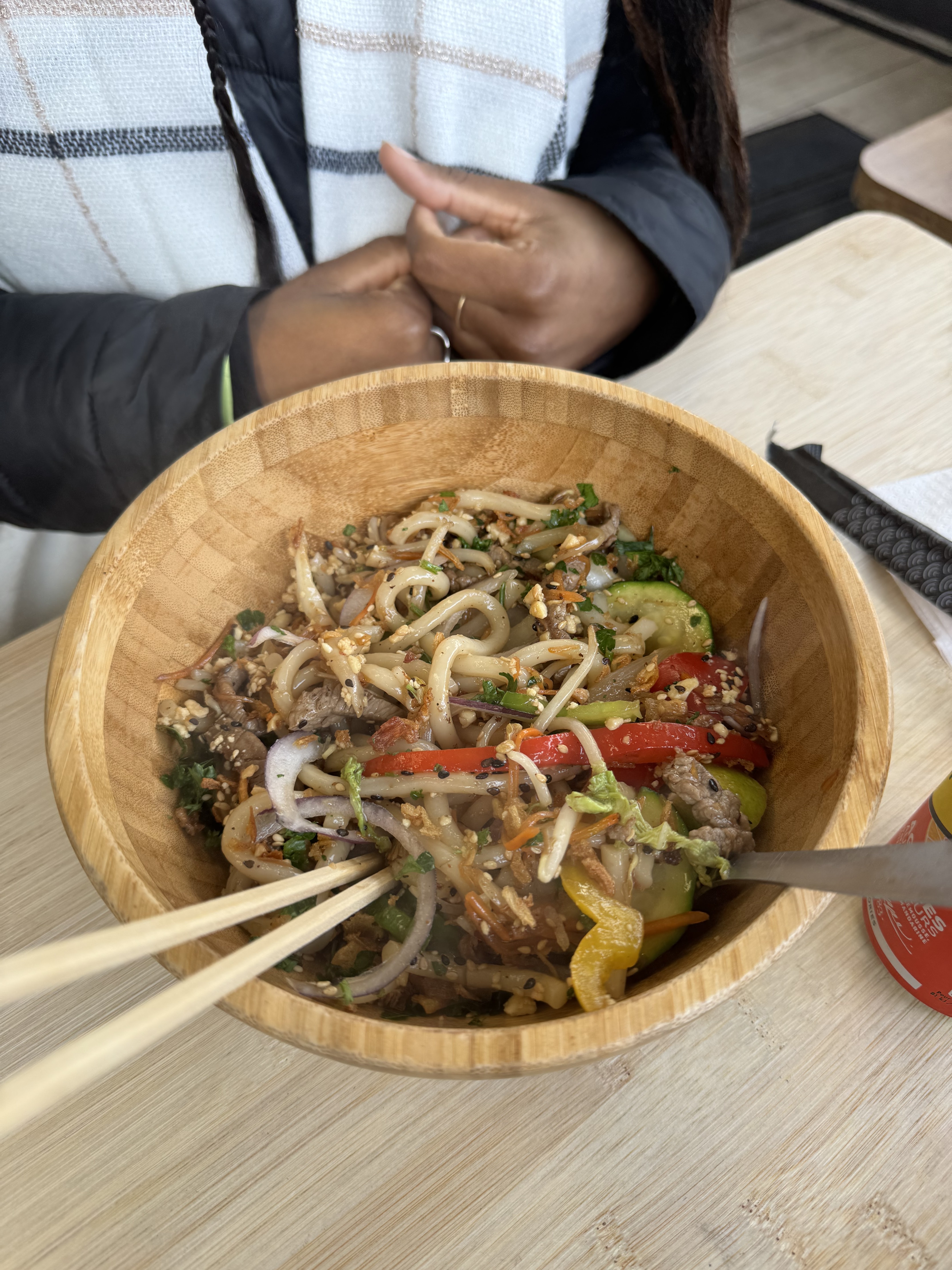 Tout est parfait !! L’accueil avec un personnel super accueillant et souriant et aussi mon bol juste parfait ( nouilles de riz et légumes ) enfin je reviendrai 🥰🥰🥰