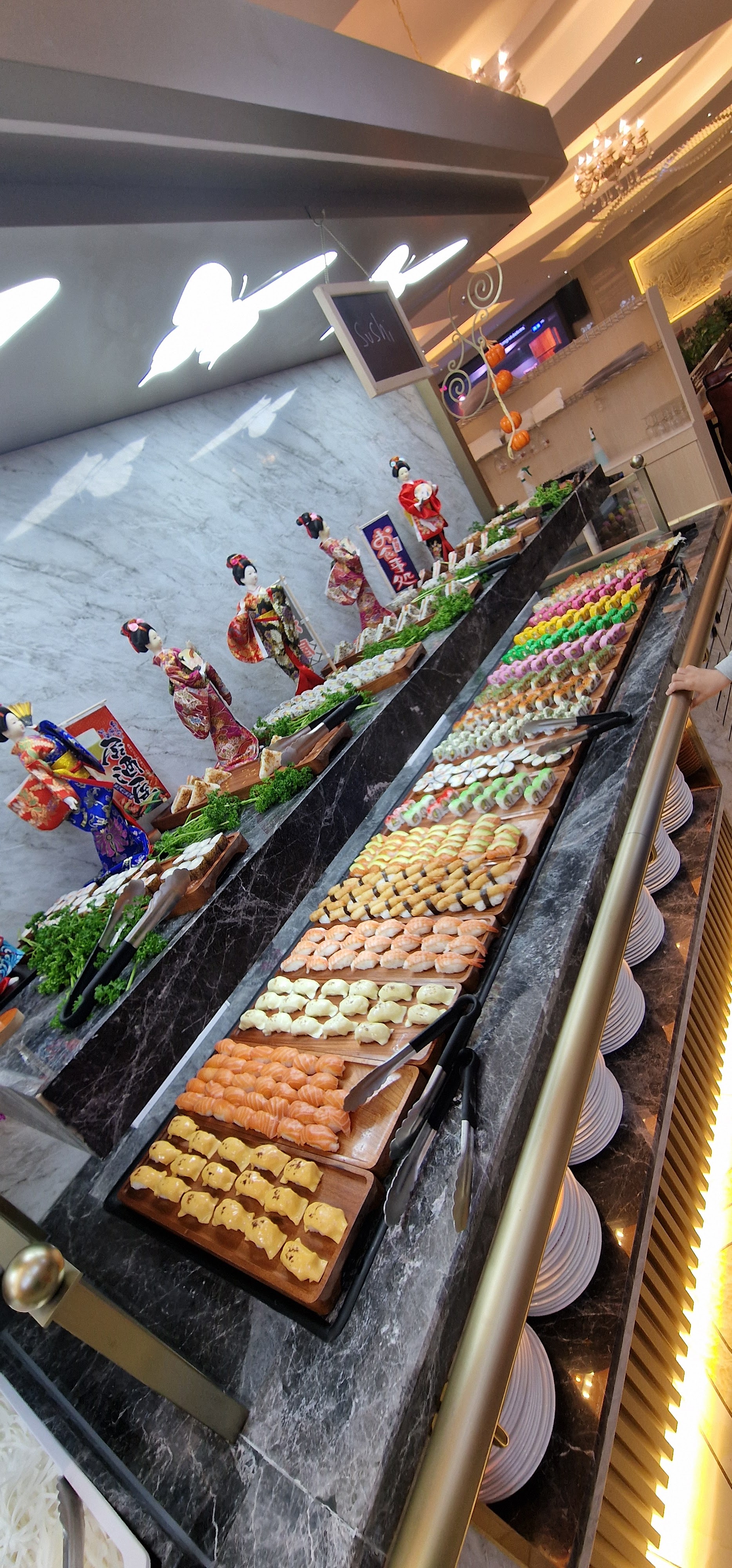 Un restaurant buffet classique. C'est grand, c'est lumineux, c'est un peu bruyant. Le buffet est varié : spécialités chinoises, japonaises, un wok, un tepanyaki, des fruits de mer, des fromages, des desserts et des bonbons... La qualité : semblable à ce qu'on peut trouver dans ce genre de resto...