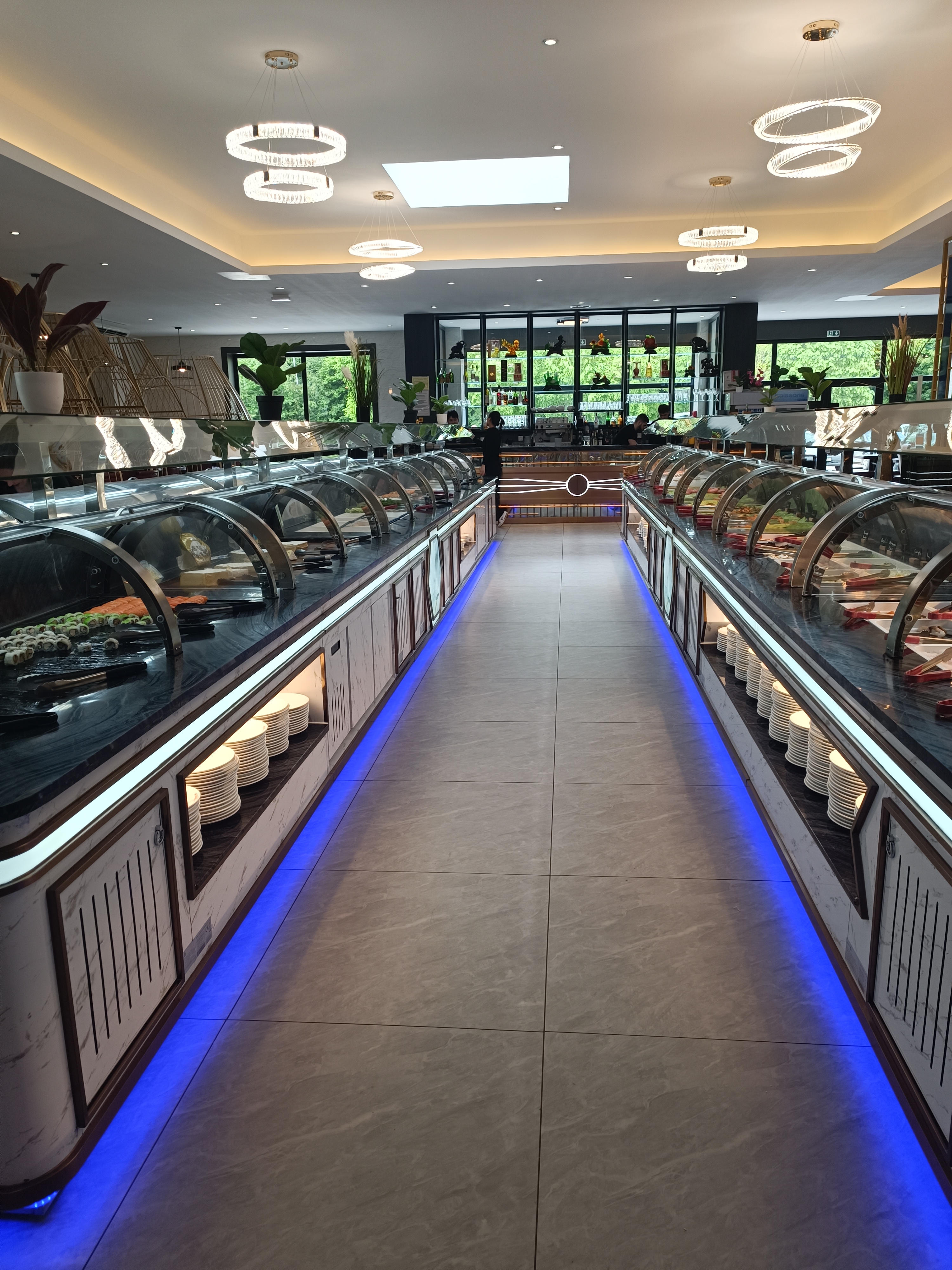 Nous avons choisi ce lieu comme étape d'une traversée du pays pour revenir de vacances. En comparaison d'autres établissements, un accueil très rapide et efficace qui permet de rapidement pouvoir se restaurer sans pression excessives pour des consommations supplémentaires, d'autan que les cafés sont compris dans le forfait repas. La nourriture est fraîche mais quelques manques en salade et sur les makis. De plus, certains plats sont long à être re-alimenté quand en rupture de stock. Pour finir, le choix des desserts est très satisfaisant.