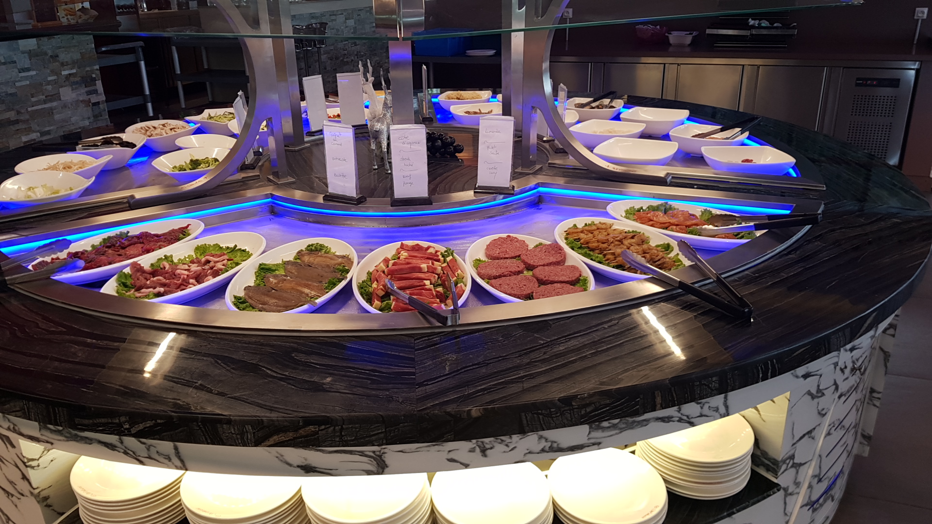 Grand buffet avec de nombreux produits frais. La plupart des plats sont savoureux et j'ai vraiment apprécié la cuisine au wok où ils préparent les ingrédients sélectionnés devant vous. La machine à café ne fonctionnait pas et les desserts ne sont pas vraiment bons, spécialement les glaces. Dans l'ensemble, j'ai été agréablement surpris et cela vaut le détour si vous êtes dans les parages.