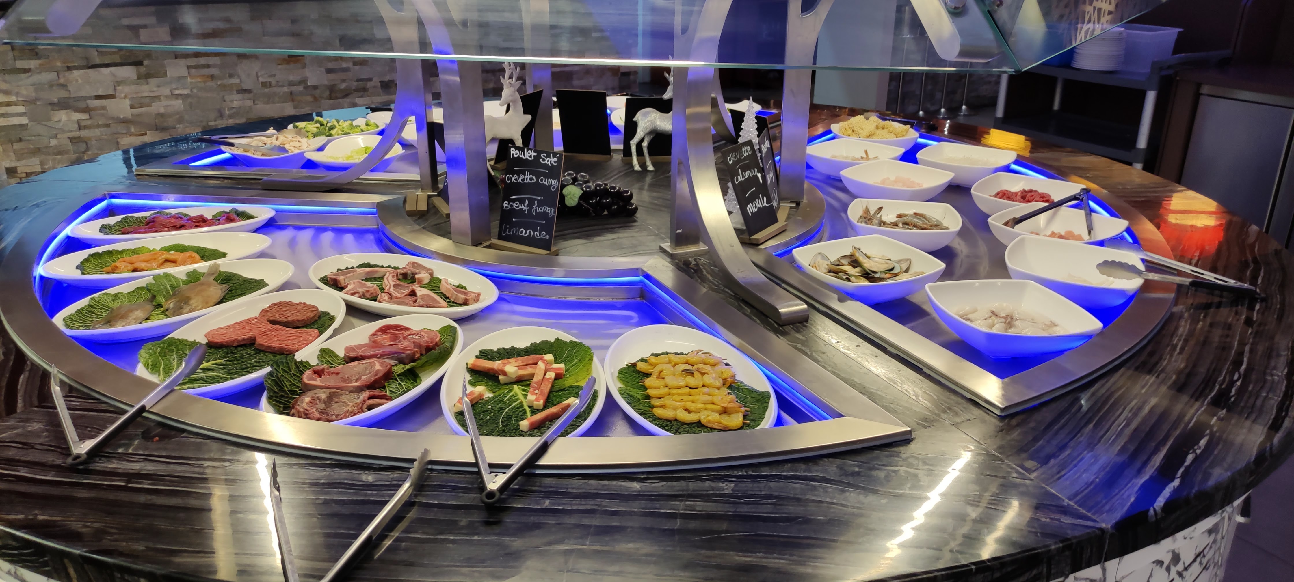 Grande salle, beaucoup de choix. Possibilité de cuir au wok avec sauce (très bonnes). Mais bon rien qui ne se démarque vraiment des autres restaurants à part le prix exorbitant du menu...