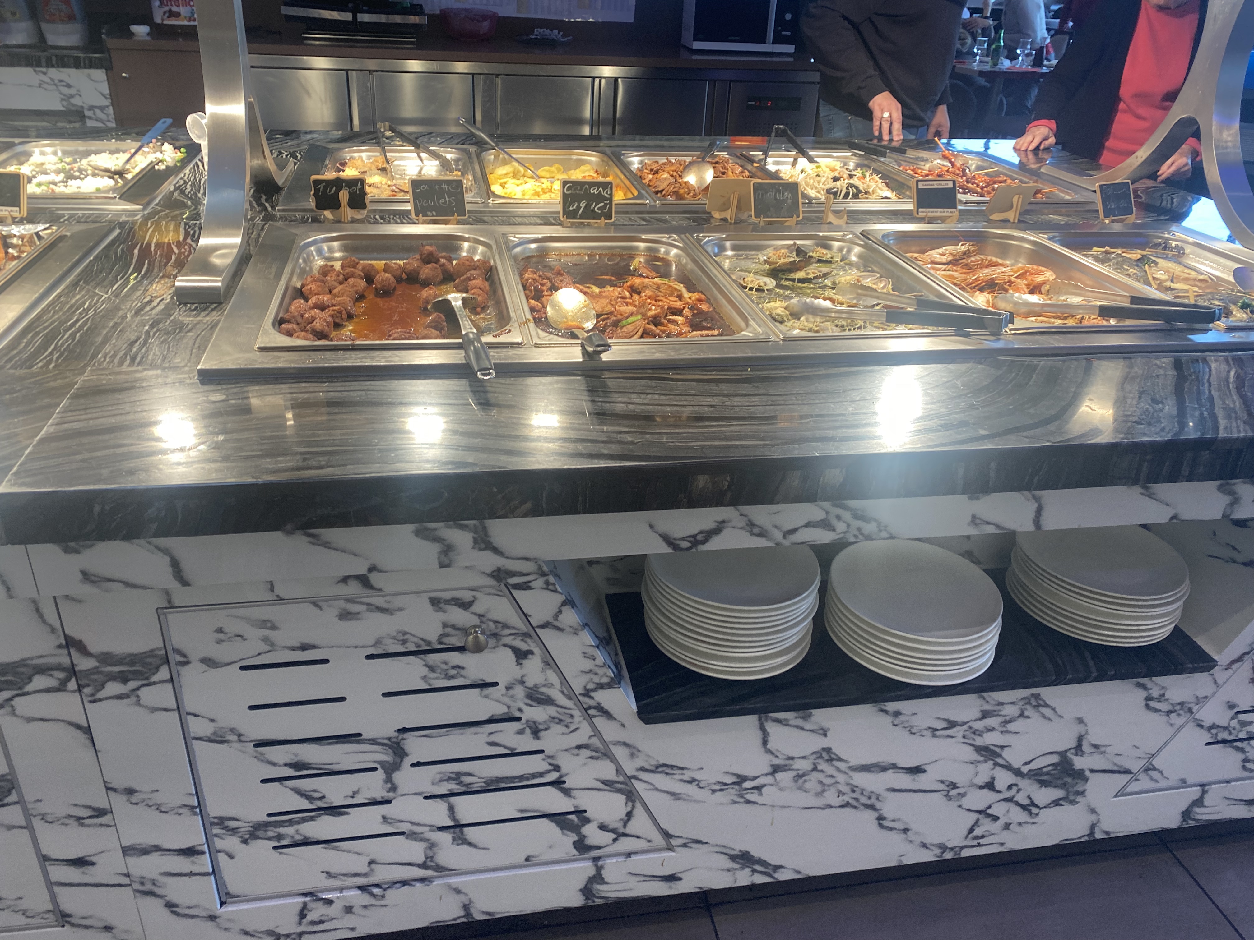 L'accueil est toujours agréable ici. Et le sourire toujours de mise pour les employés. Formules de buffet à volonté à base de plats asiatiques (sushis🍣, nouilles sautées 🐂🐖🐔 etc) et de grillades mais aussi des entrées plus classiques (carottes🥕, rémoulade). Le plus: les fritures telles que samoussas ou nems ne sont pas trop grasses. La carte des desserts est bien fournie 🥮🥧🍮et on y trouve même une machine à glace italienne vanille/fraise 🍦