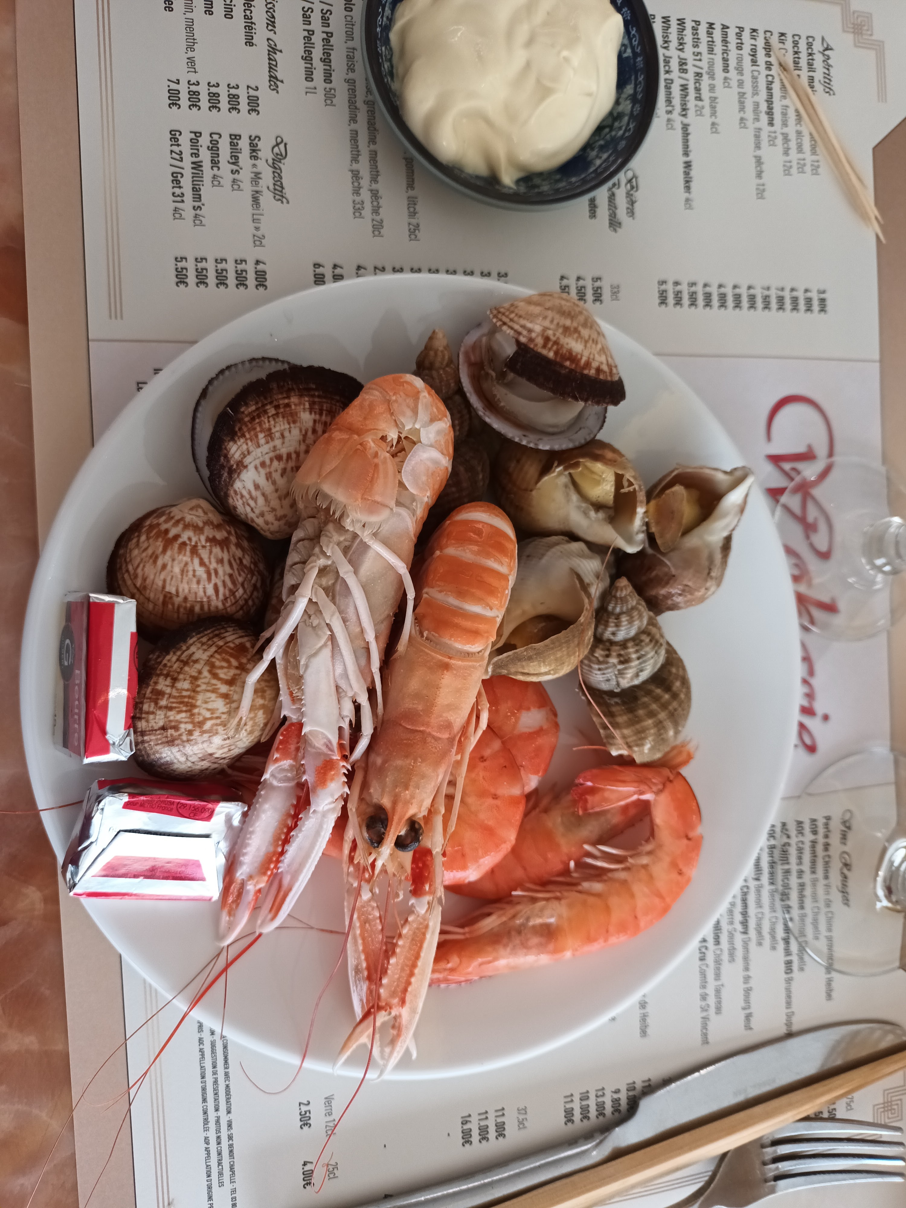 Super moment en famille plats varié, chaud et pas gras du tout.Large choix pour les fruits de mer également.Salle grande et WC propre. Personnelle agréable