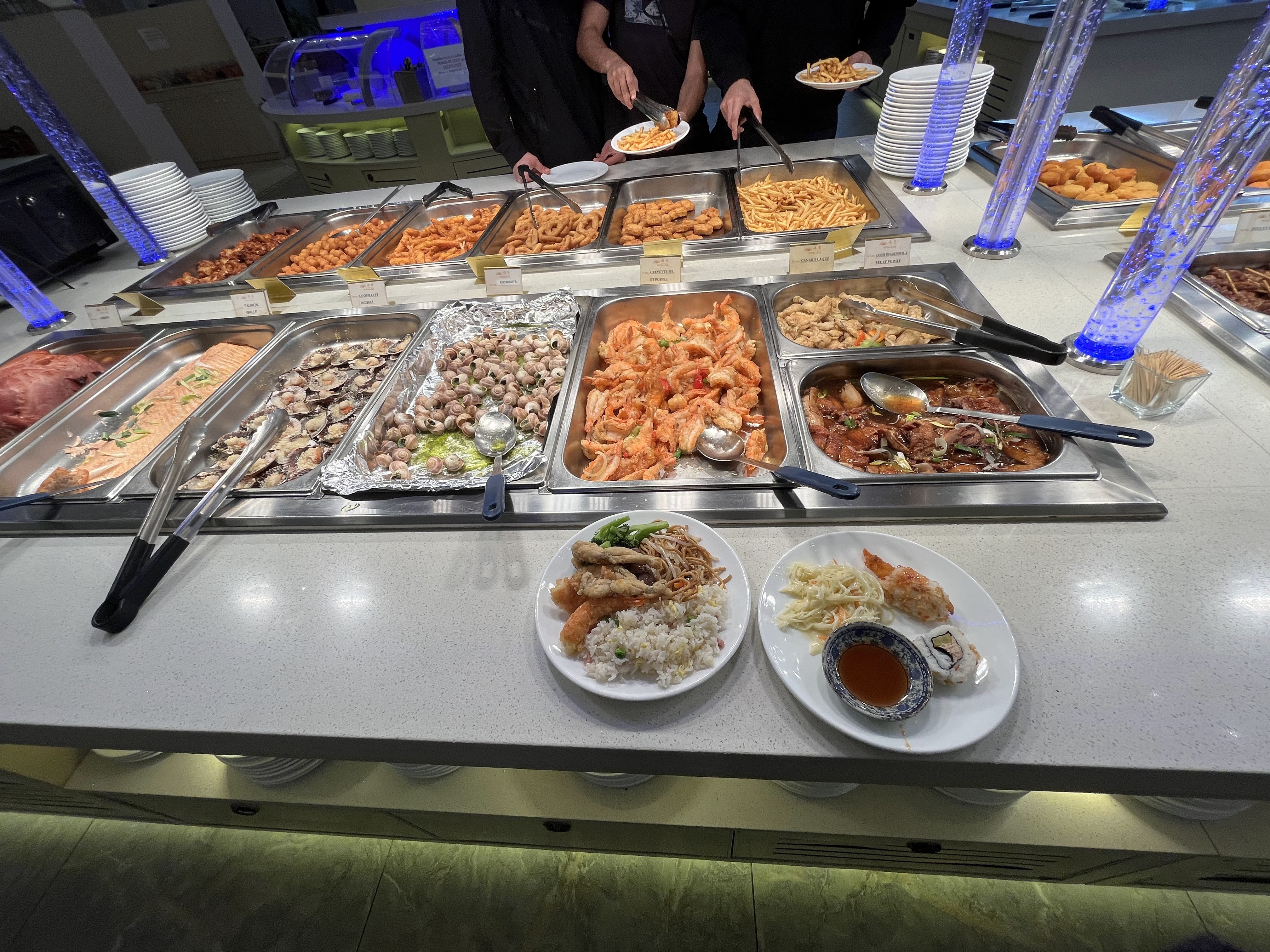 En ce qui me concerne, j'y prend plaisir, de la diversité, une bonne qualité de victuailles, fruits de mer et crustacés, salades variées, le wok offre aussi une variété de plats non négligeable N'oublions pas non plus tout ce qui est ce frit, et pour finir, fromages et desserts. Toute personne peut trouver de quoi passer un agréable moment en famille.