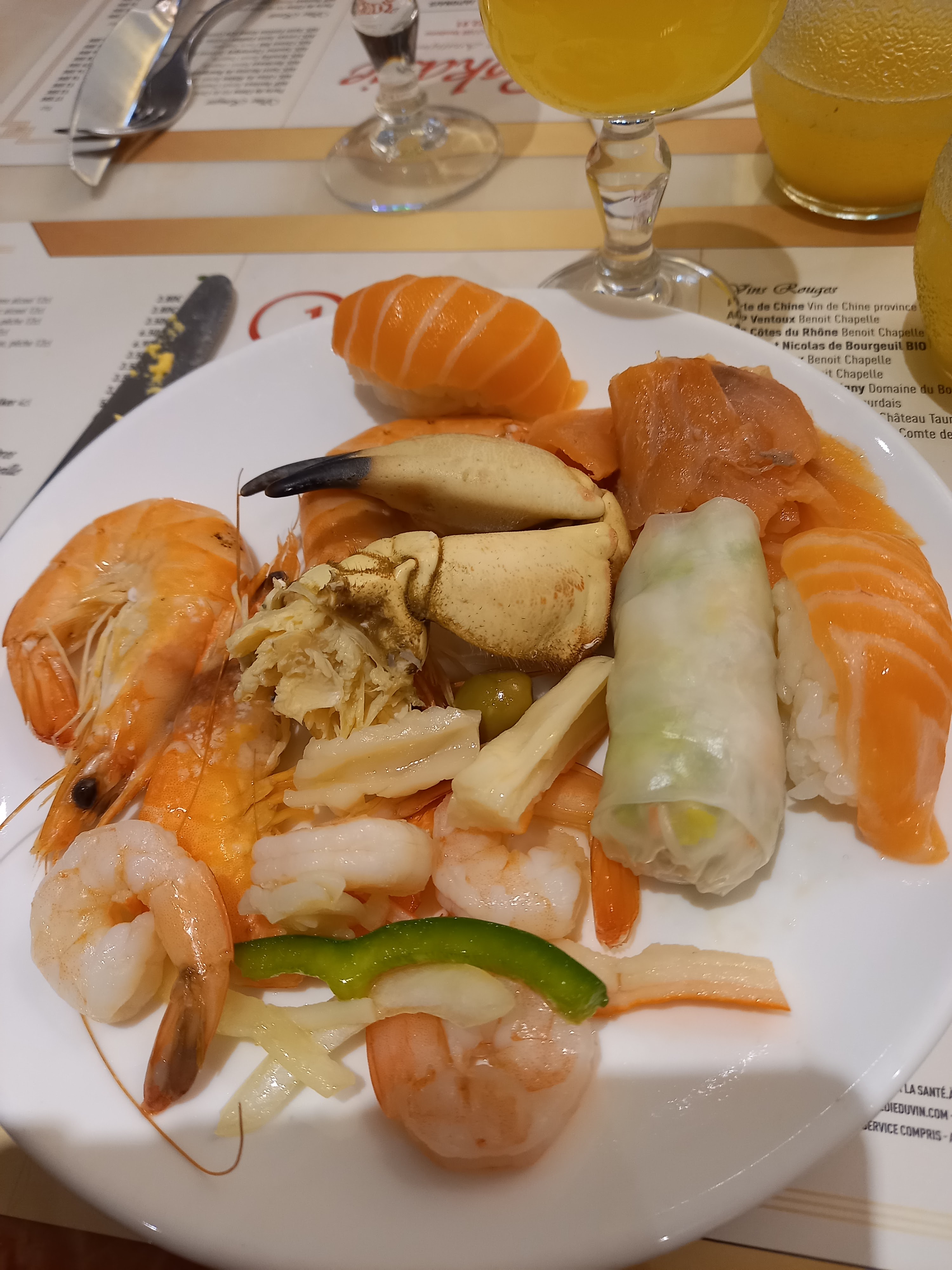 Agréablement surprise ! On y trouve plusieurs genre de cuisines, bien que majoritairement asiatique, mais également des fruits de mer et crustacés. Large choix donc de plats et desserts. Bon rapport qualité prix 💲