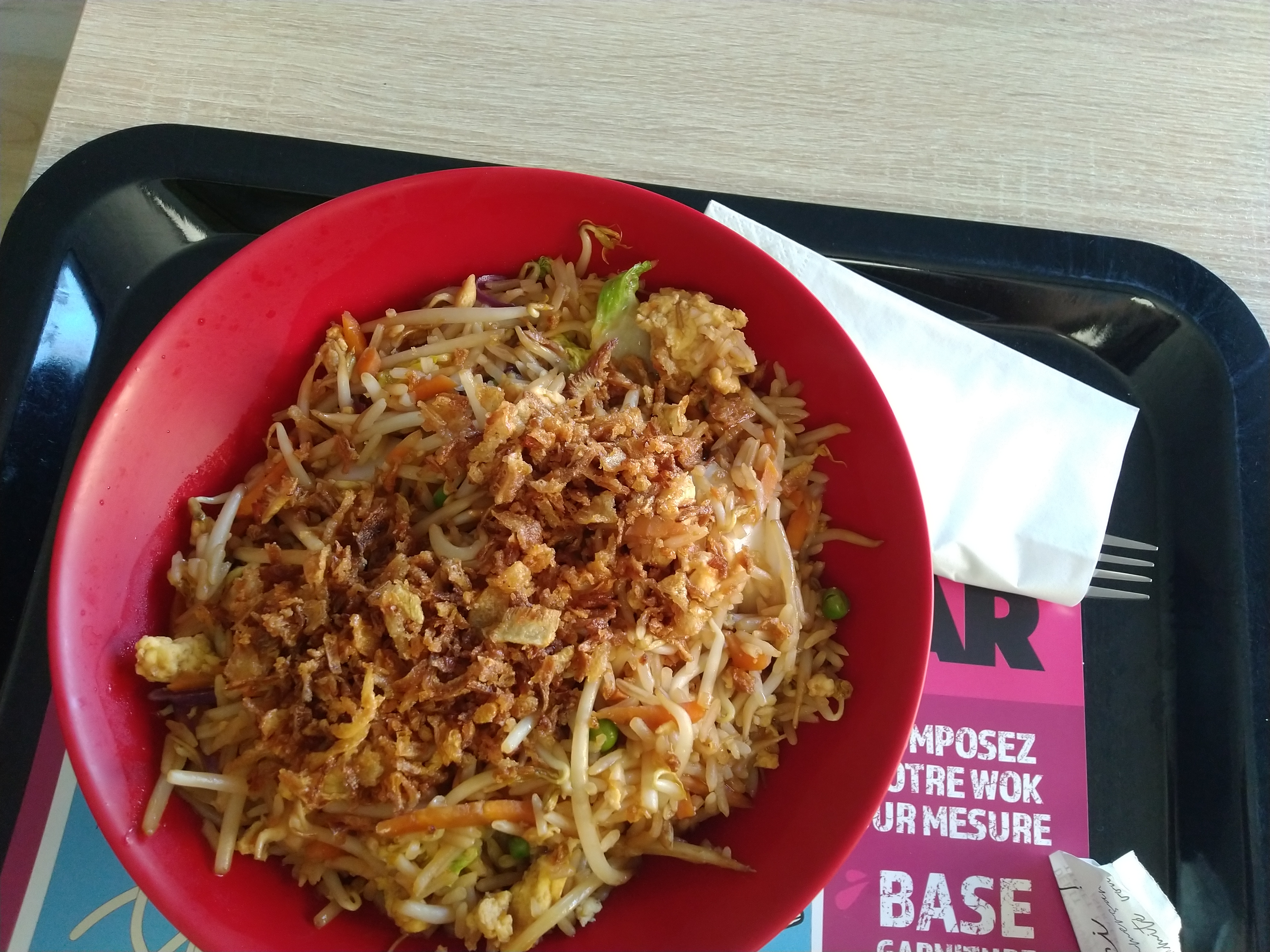 C'est sur que ce n'est pas cher, et peut être fais avec des produits frais. Mais honnêtement il n'y a aucune saveur, c'est fade, je me demande même comment il est possible de rater un wok à ce point là alors que tous les ingrédients sont réunis pour faire un bon plat. Généralement je commande en restaurant pour me faire plaisir, or j'ai regretté pour cette fois. Peut être que j'ai simplement commandé au mauvais moment, mais pour ma part j'ai été déçu.