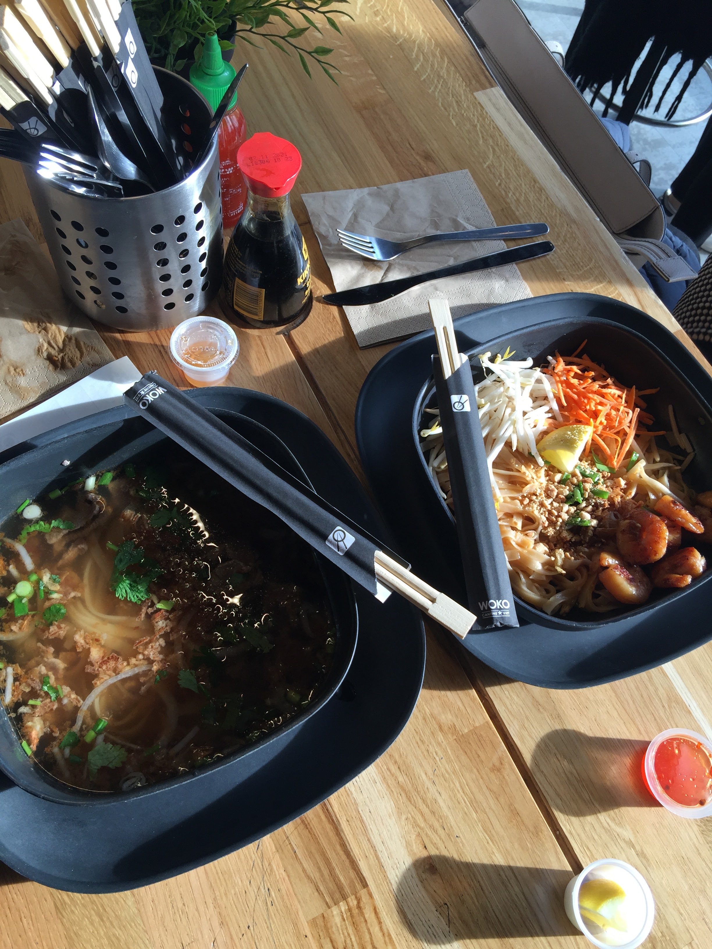 La qualité et la fraîcheur des produits est très douteuse, la salade et la menthe dans mon Bûn étaient fatiguées, noircies.. Quant au Bûn qui n'en était pas vraiment un, toute personne ayant déjà mangé dans un vrai restaurant asiatique s'en rendra compte. Pareil pour le Pad Thai qui n'a en rien l'allure et l'aspect d'un vrai Pad Thai. Je me demande ce quu justifie donc le prix excessif du menu (13,50€)? Même ma grillade poisson est bon marché, du panga... Mon nem crevette en entrée consiste en de la salade (pas fraîche), des vermicelles et des crevettes. Le tout très fade, même avec la sauce Nuoc mam. Bref, Woko c'est de la nourriture asiatique pour les gens qui n'ont jamais mangé de nourriture asiatique, dire que le rapport qualité /prix est excessif est un euphémisme. C'était la première et la dernière fois pour moi.