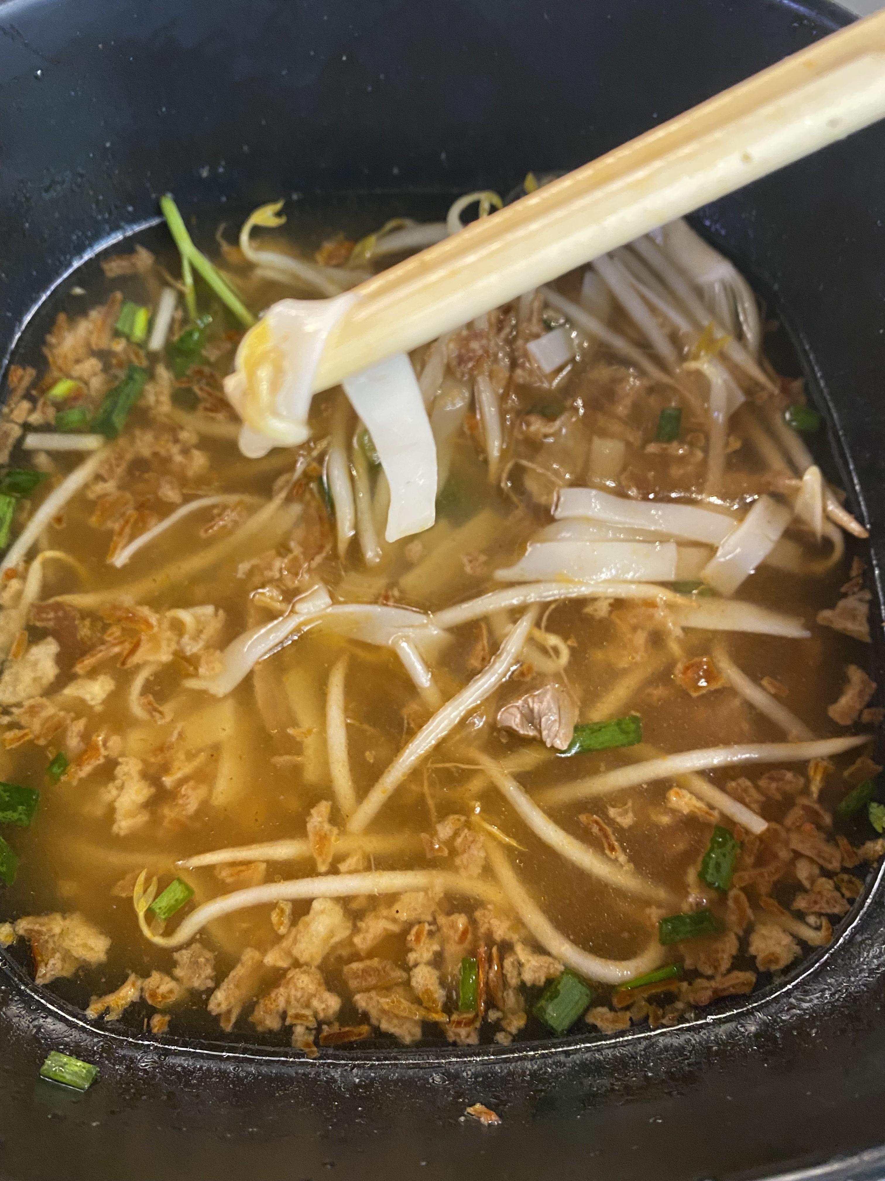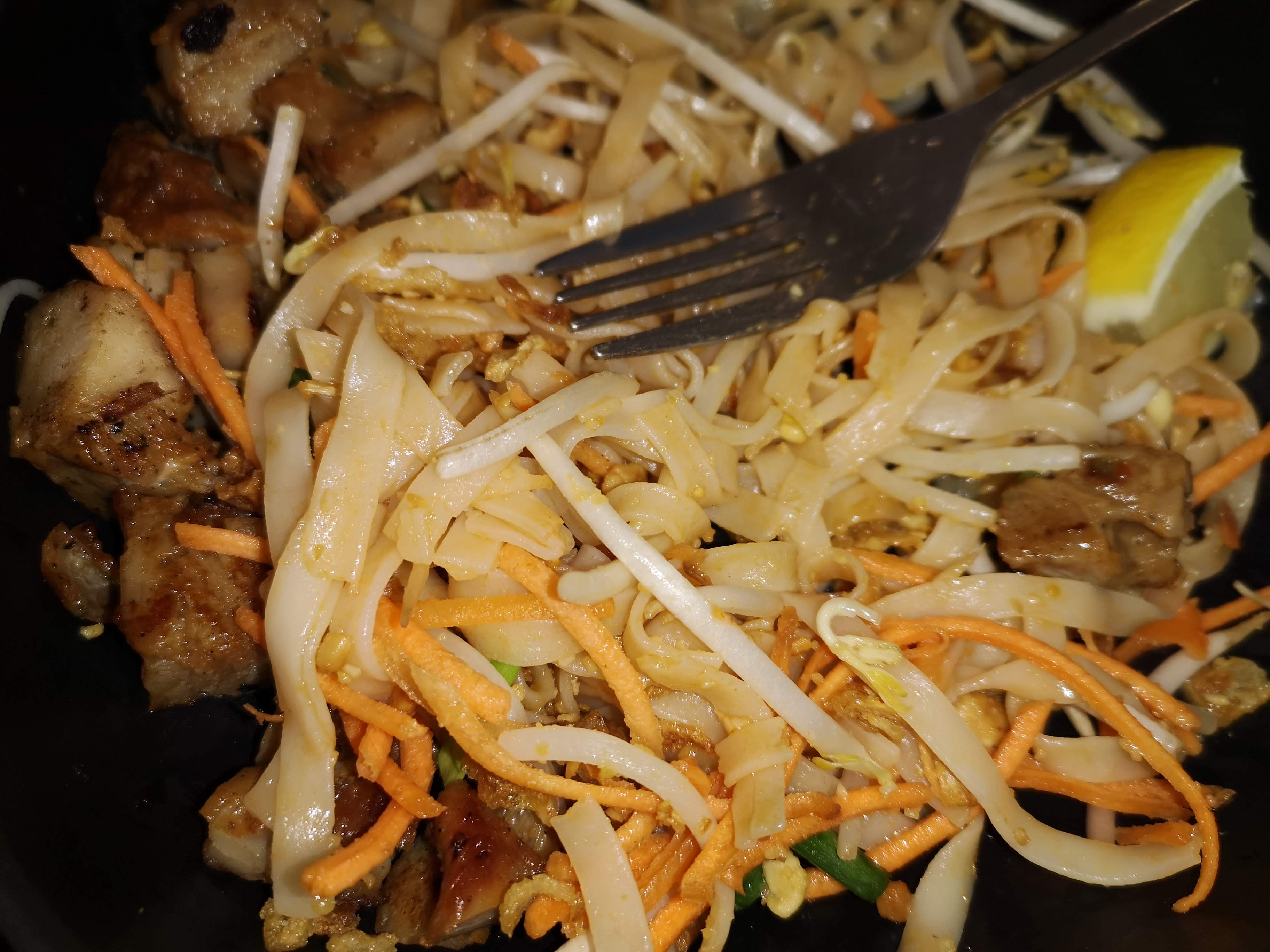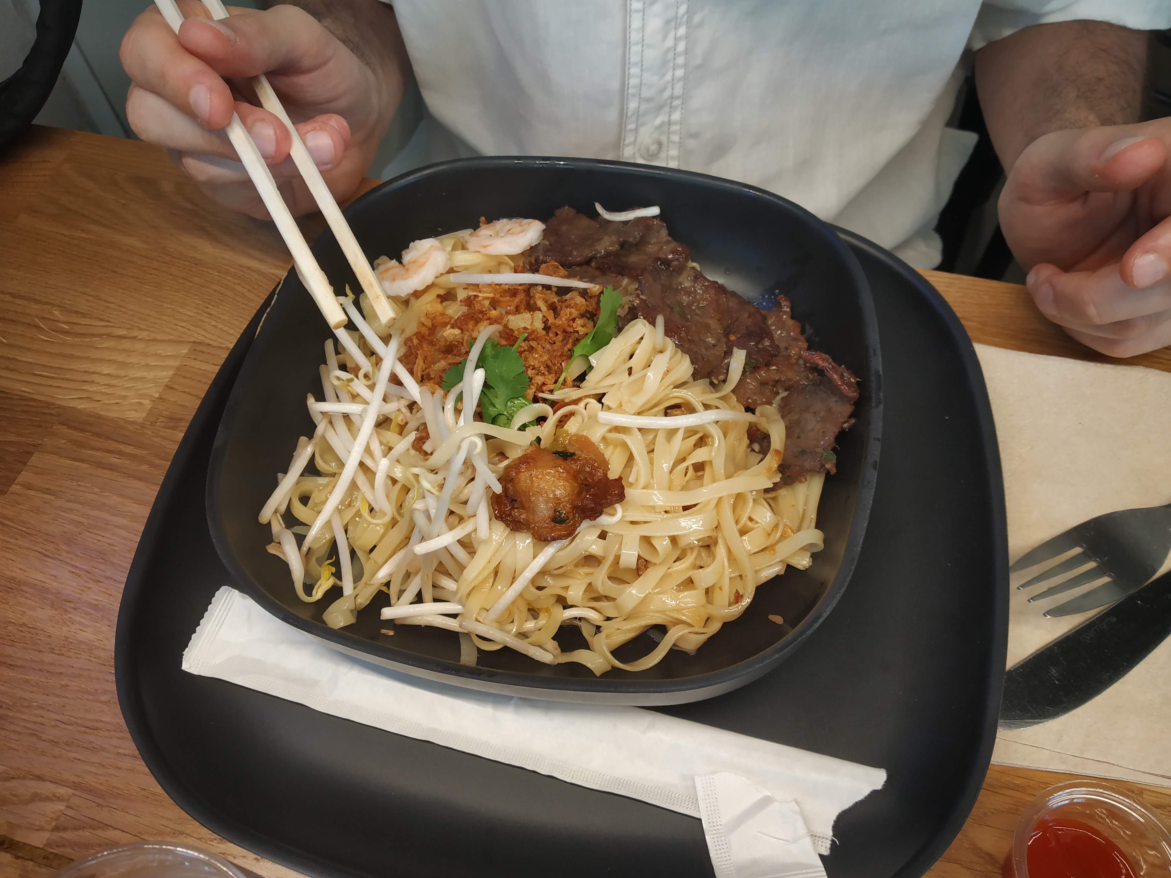 J'ai commandé des nouilles de riz aux crevettes, j'étais surprise en y voyant un morceau de viande (surtout que je n'en mange pas !)
