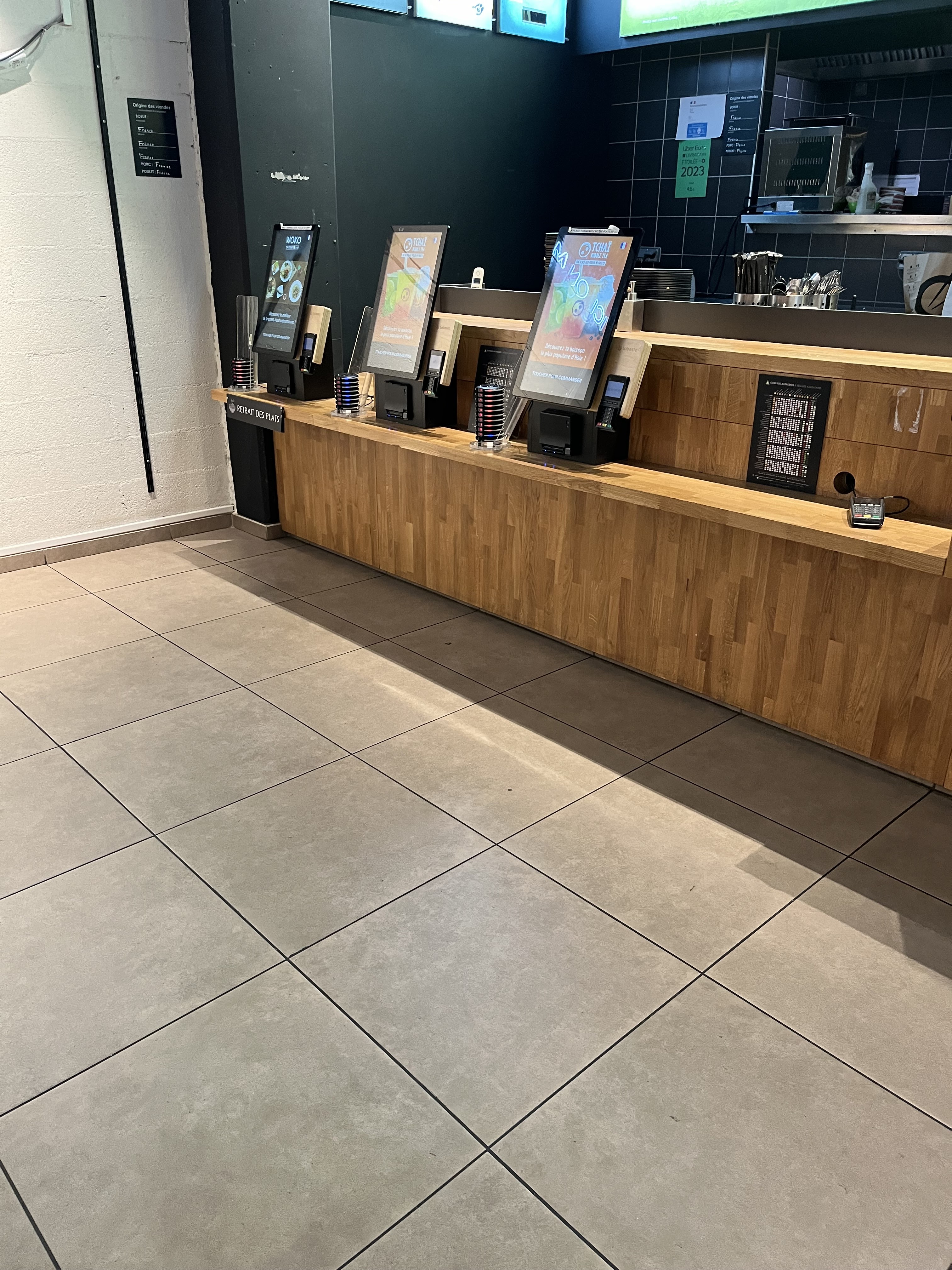 Les bornes sont bloquées mais les personnels font rien. Ils laissent les bornes rester bloquées et prennent pas la commande à la caisse, on attend dizaines minutes pour rien