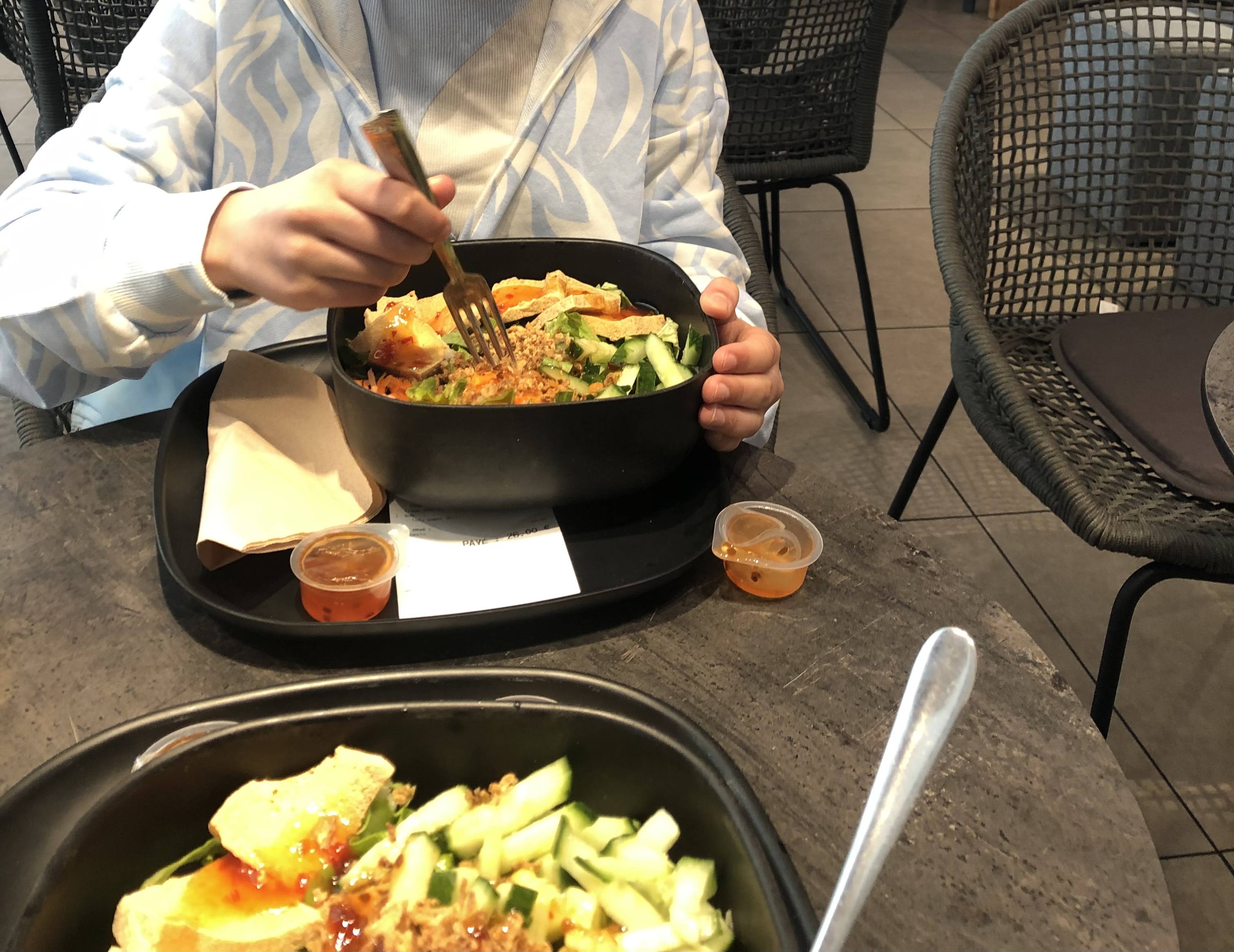 Nous avons été accueillis par Kessia, une superbe hôtesse qui nous a servis avec le sourire. Malgré l’heure tardive, elle a été très agréable avec nous. J’ai pour ma part pris un Bo Bun qui était délicieux et mon amie a pris un pad thaï et qui était aussi très bon mais regrette une quantité insuffisante. Pour autant, je le recommande (option mangue glacée !!)