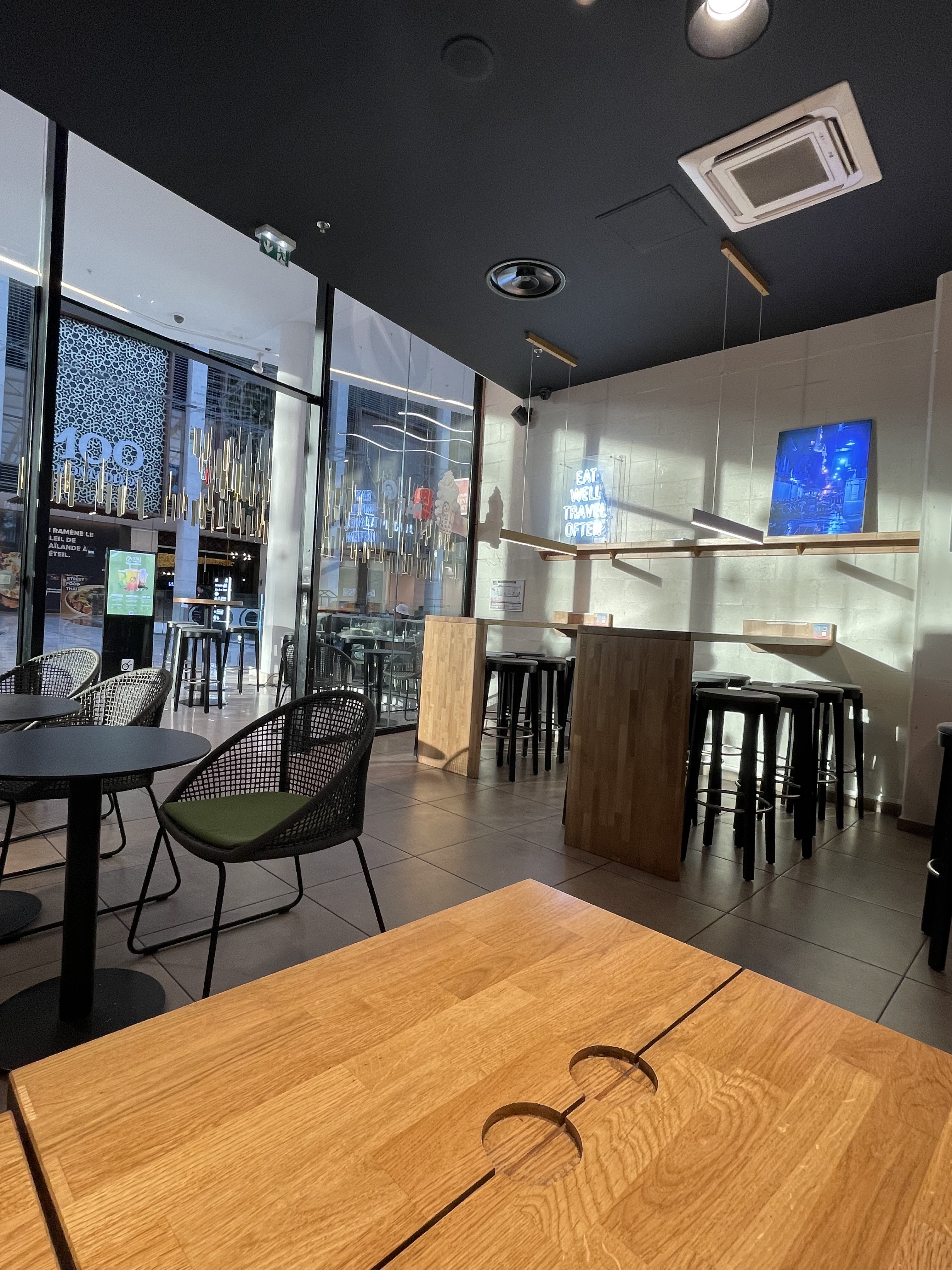 Bonjour. Lieu propre et jolie. Commande sur la tablette et on récupère notre repas donc pas de service, donc je ne peux pas mettre d'avis sur les commerciaux. J'ai pris un Bo bun et mes amis des Com riz il y avait dans les assiettes 2 morceaux de viande. Dans la mienne plus de comcombre que de vermicelle. Frenchement prix et quantité à revoir. Le goût je vais dire merci à la sauce nem sans cela pas de goût ni sel ni poivre. Très déçue.