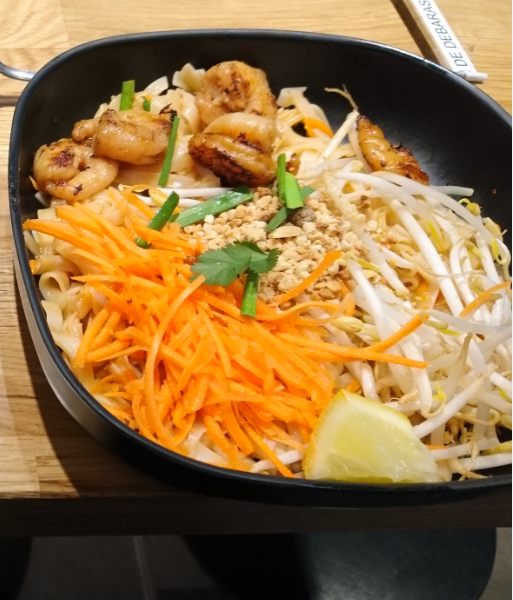 Accueil chaleureux, j’ai été étonnée que le plat soit simple et aussi bon, avec des ingrédients frais, pâtes thaï aux crevettes bien assaisonnés, goûteux et surtout léger comme j’aime Prix :13€ le menu avec boisson, bien raisonnable et surtout qualitatif comparé à ce qui se fait dans le centre commercial