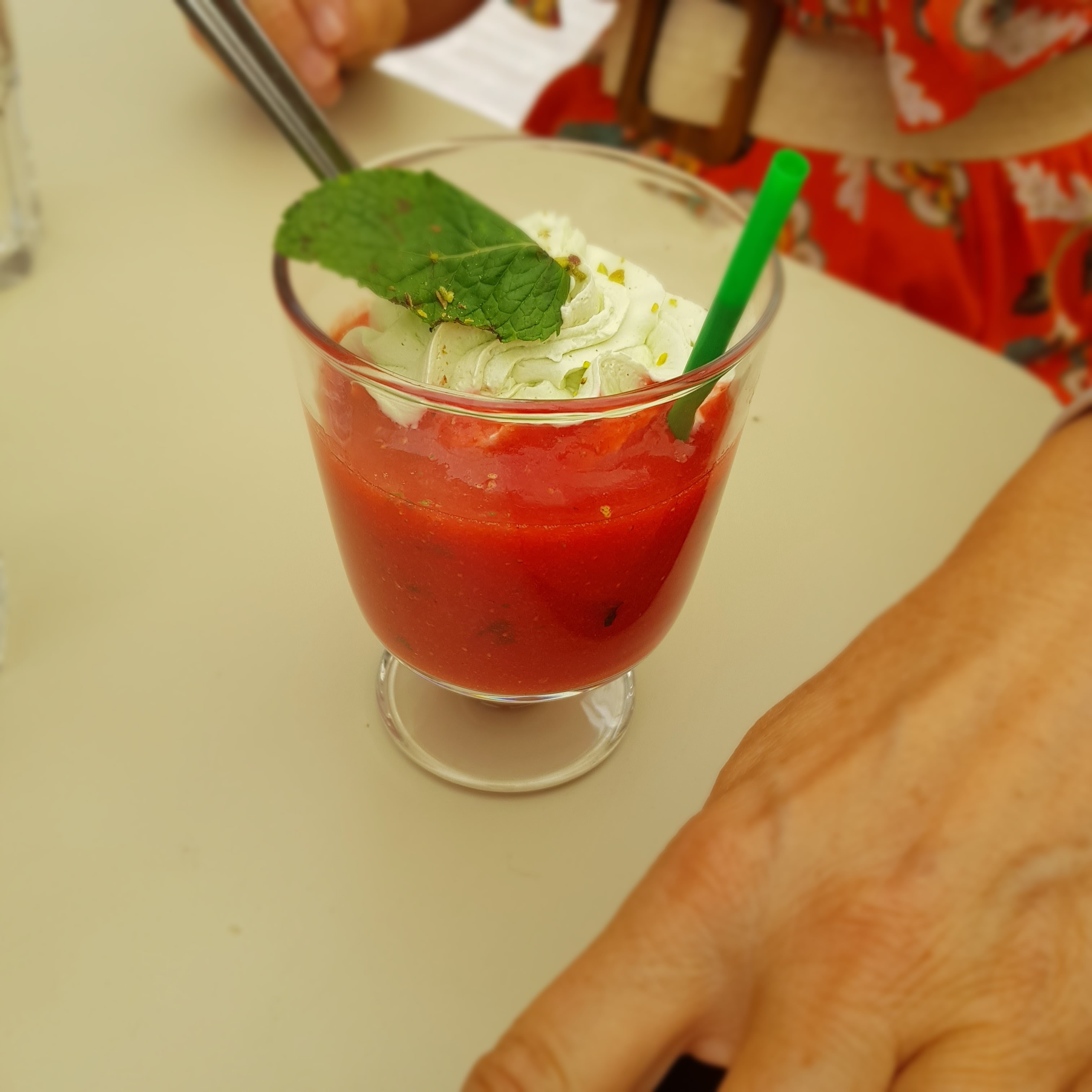 J’ai dîné en terrasse, c’était excellent. Entrée, plat et dessert, rien à redire. La soupe de fraise, meringue et boule hibiscus, un des meilleurs desserts que j’ai pu gouté dans ma vie. Félicitations au chef !