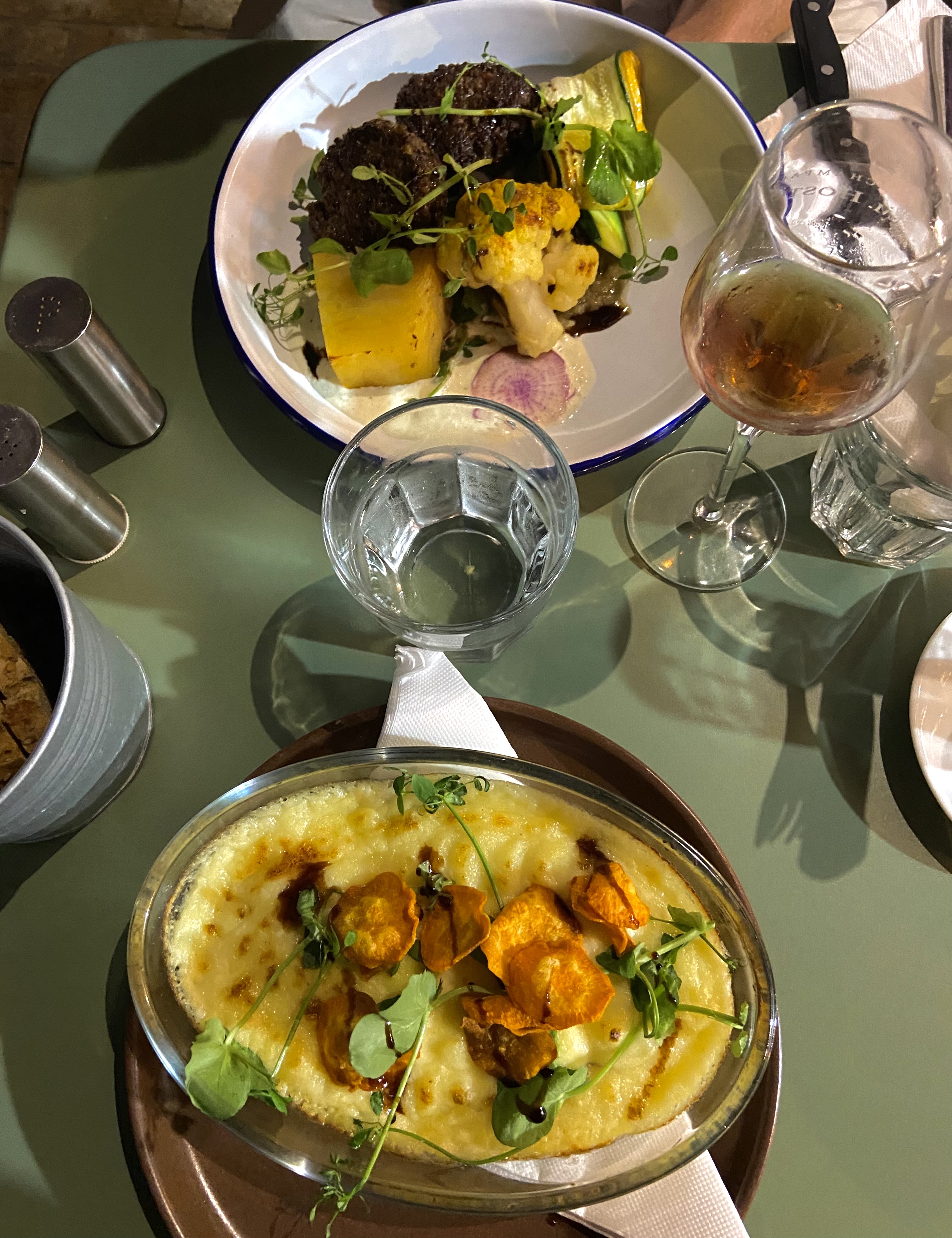 Excellent ! Nous avons partagé 3 entrées et un crumble exquis à 2, on a adoré ! Aucune fausse note (mais pourquoi pas ajouter un plat principal végé à la carte ?)