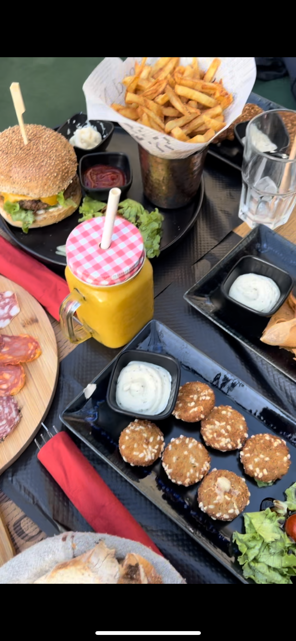 Excellent accueil personnel très sympathique et disponible. Une magnifique terrasse pour déguster une assiette de tapas ou leurs magnifiques hamburgers. Très agréable je conseil vivement