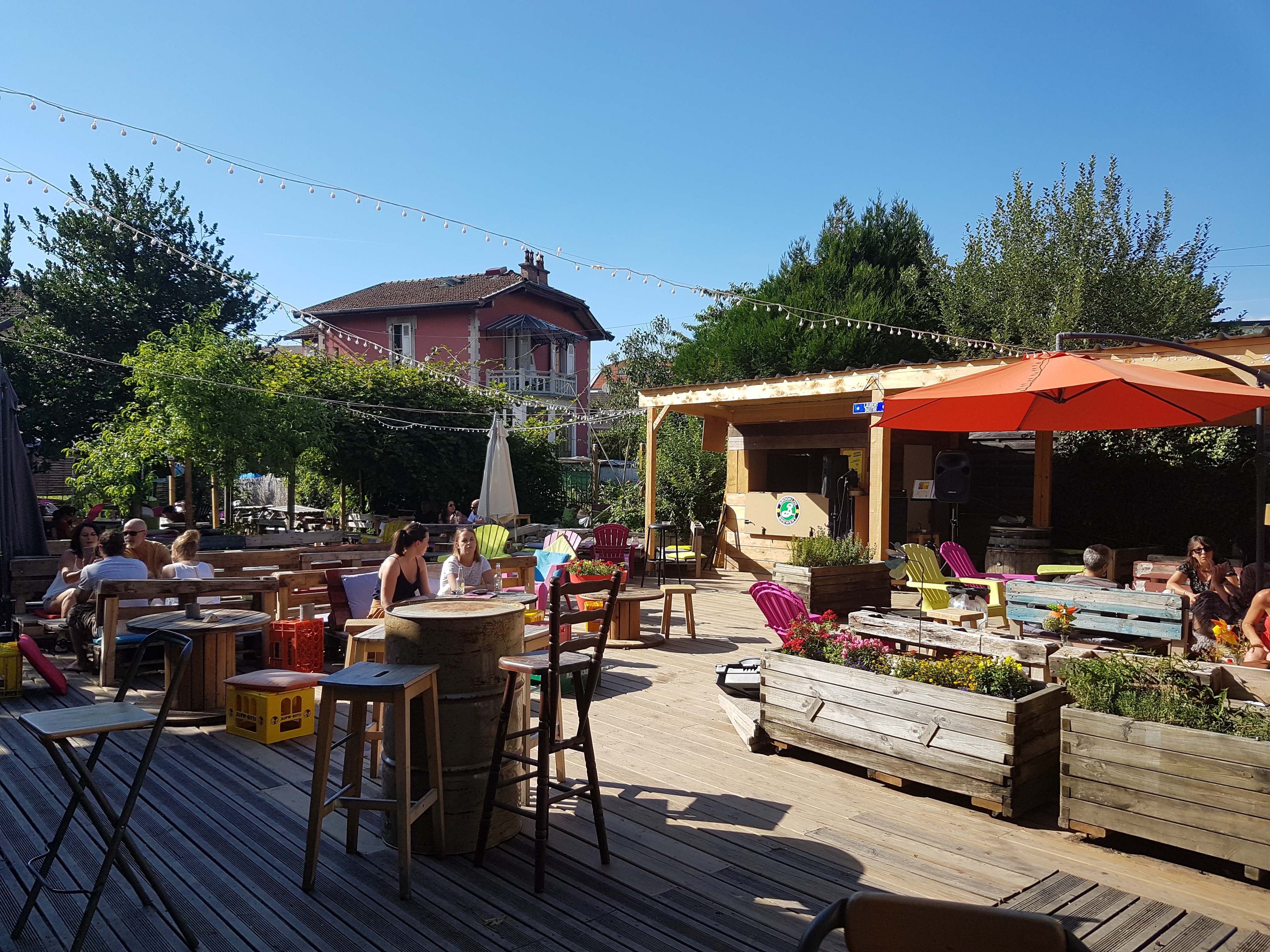 Le bar référence de l'été sur Annecy. Tous en recup et en pleine air, super ambiance, a la woodstock