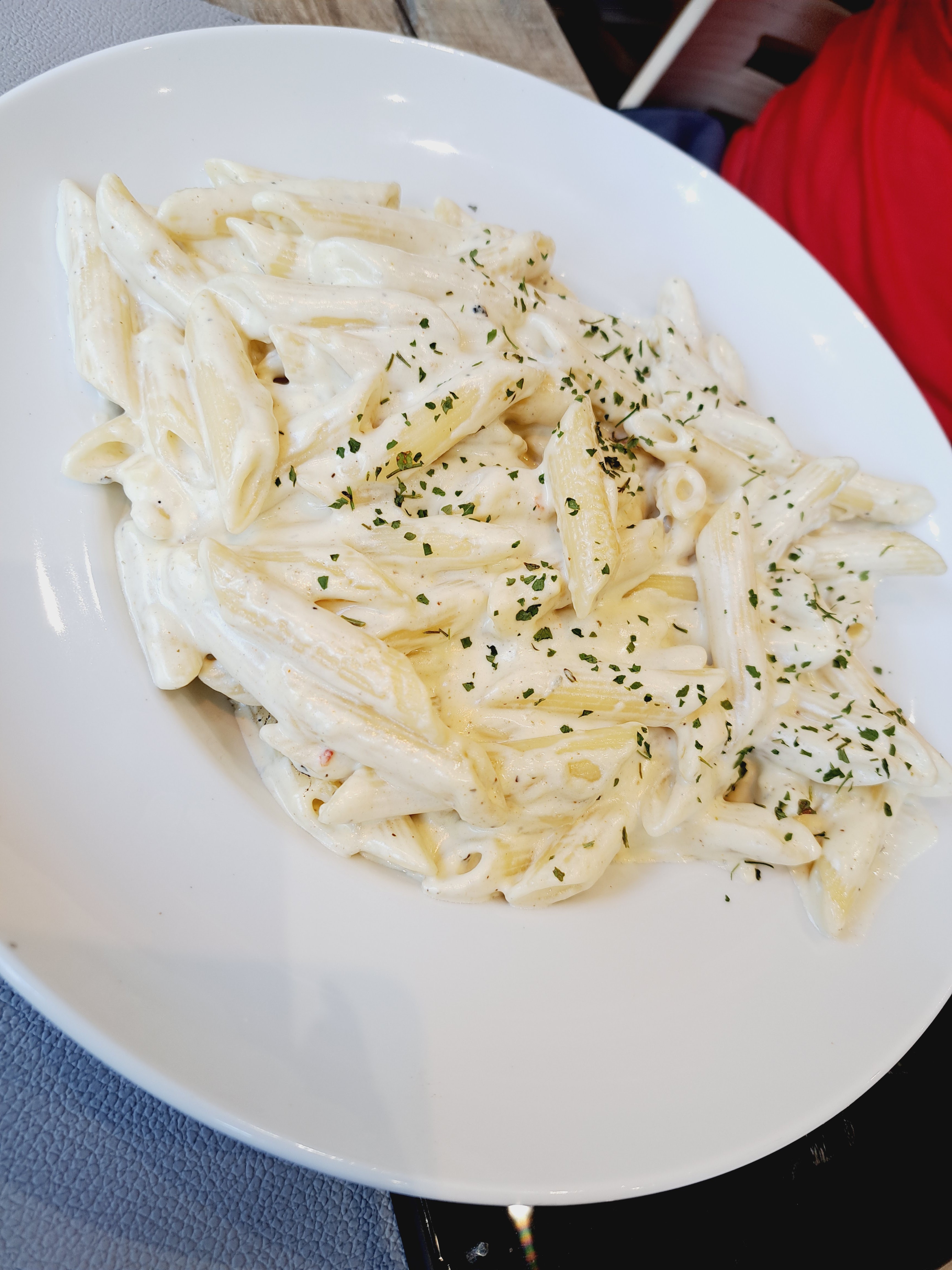 Bon première fois que je mange la bas , le grec est super bon rien a dire mais par contre les pâtes , excusez moi les gars mais quand vous faites un plat nommé Scampi , y’a la moitié de vos ingrédients, pas de courgettes , pas de tomates ,aucun assaisonnement ni sel ni ail , même pas un semblant de piment vraiment , les crevettes n’était pas sautées , même si elles étaient bonne quand même aucun soucis Mais vous en mettez 5 à tout casser, le plat est remplis de pâtes et de crèmes fraîches voilà de quoi est constituée votre Scampi ,!! Je le recommanderais pas , car il manque clairement de goût , la prochaine fois je prendrais un grec , était beaucoup mieux
