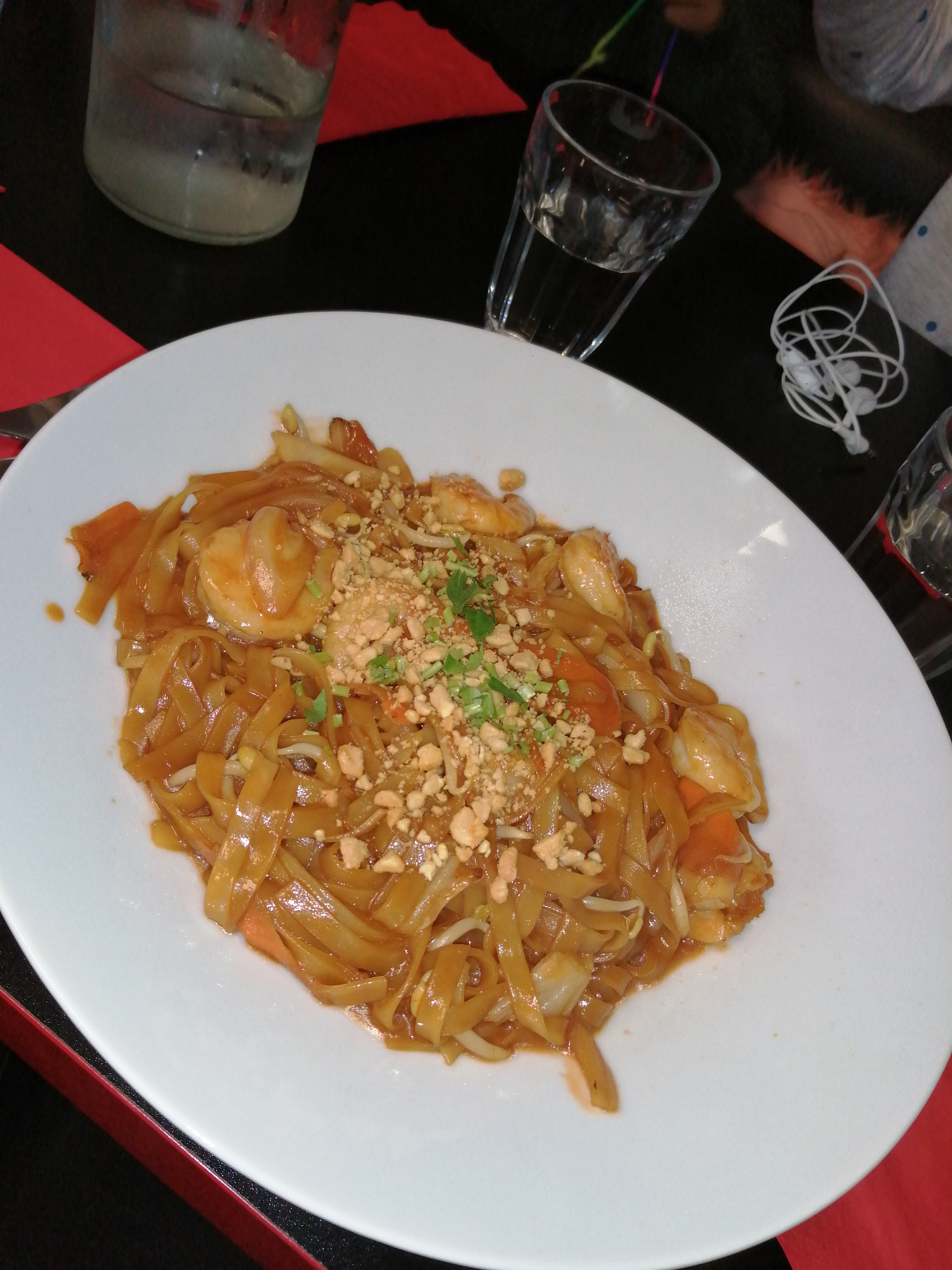Accueil sympa, serveuse disponible, assiette très copieuse mais pardon, moi qui suis une fan de pad thaï, ce que j'ai mangé c'est tout sauf des pad thaï ! Absence de ciboules, œuf, soja... Ça baignait ds une sauce épaisse que je n'ai pas trouvé bonne. Je choisis mes mots, je ne dis pas que c'était pas bon, je dis que je n'ai pas trouvé ça bon. Perso c'était ma 1ere fois et malheureusement je n'y retournerai pas.