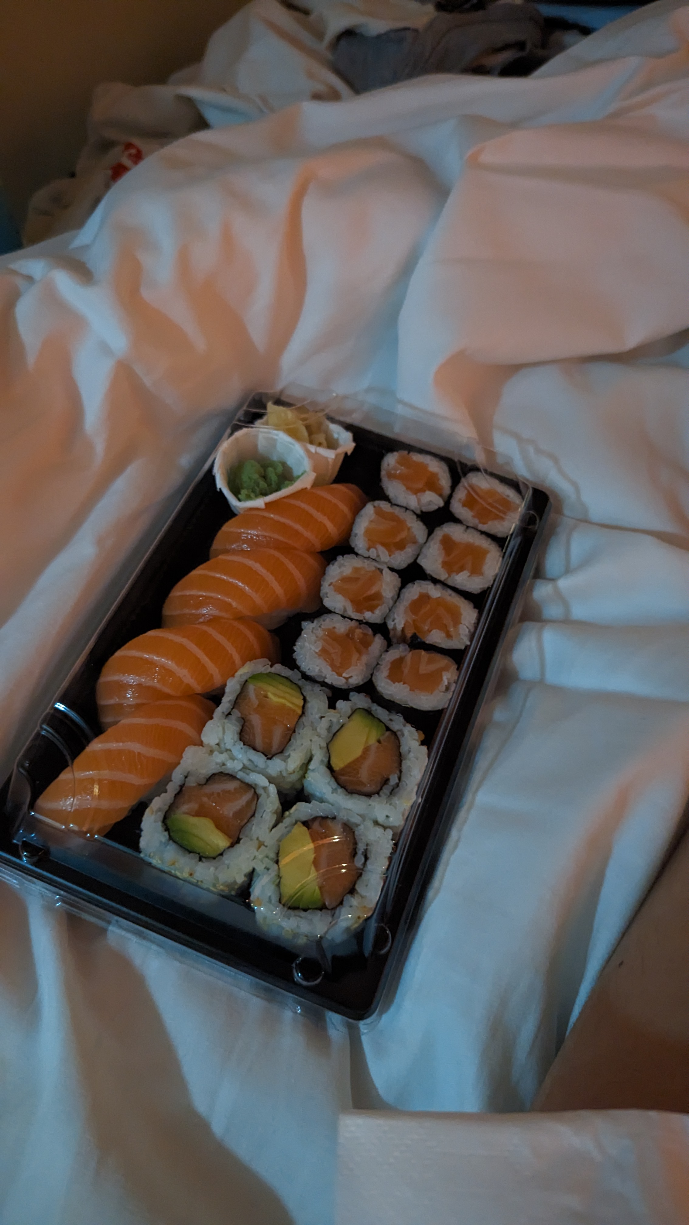 Le saumon était très bon ! Les quantités sont appréciables pour le prix. J'ai eu une arête dans mon poisson. Ça peut arriver... En revanche le thon était encore un peu congelé... Mon ami à apprécié son repas donc j'ai mis 3 étoiles...