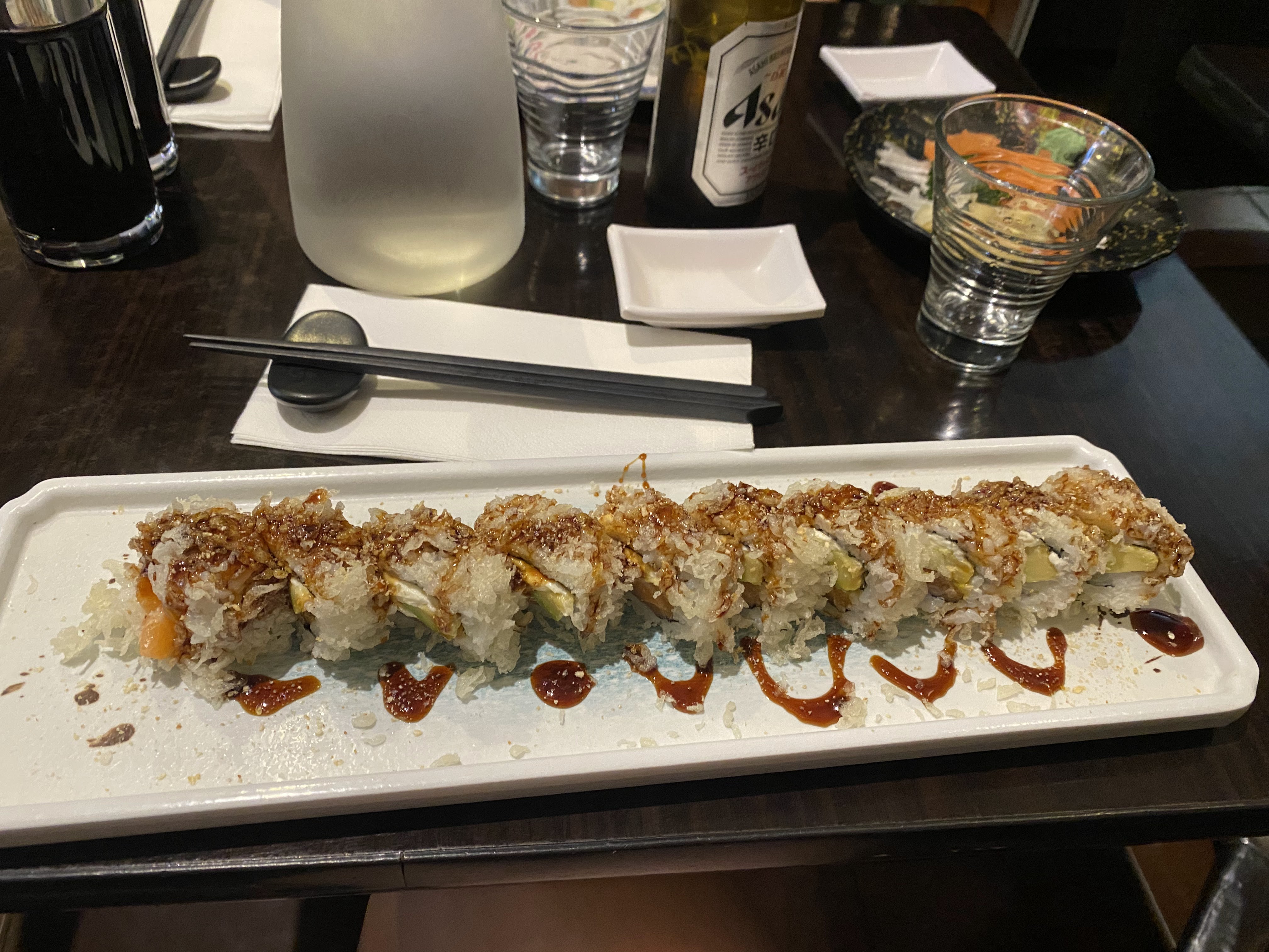 C'est pas mon premier roll sushi, mais celui-ci est le meilleur des 2! Bon équilibre des aliments, enfin un endroit où la vedette sont les condiments, et pas un surplus de riz ou de chapelure. De même pour les California maki qui retrouvent le même équilibre. Bon accueil et service rapide et tout chaud.