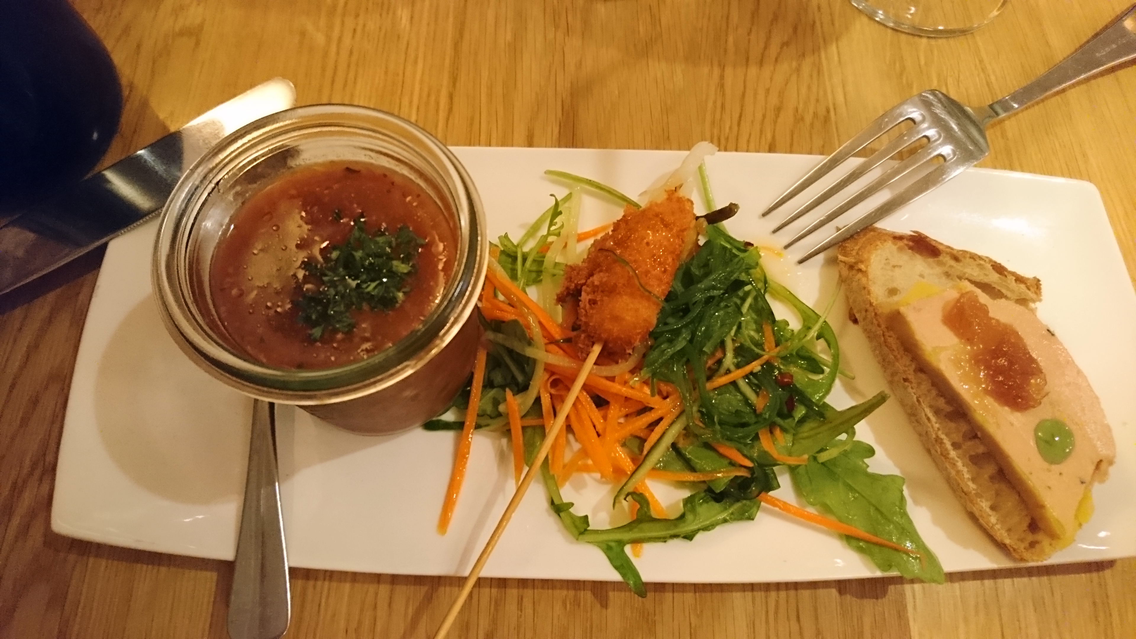 Très agréable, nous avons dîné dehors. Une atmosphère détendue. Nous n’avons pas opté pour le menu car nous préférons parfois avoir un bon plat plutôt que d’en déguster quelques-uns. Nous sommes allés aux offres spéciales du jour, c'était vraiment une bonne décision ! Le foie que nous avons eu au début n’était pas le meilleur que j’ai eu mais il n’était pas mauvais du tout !!