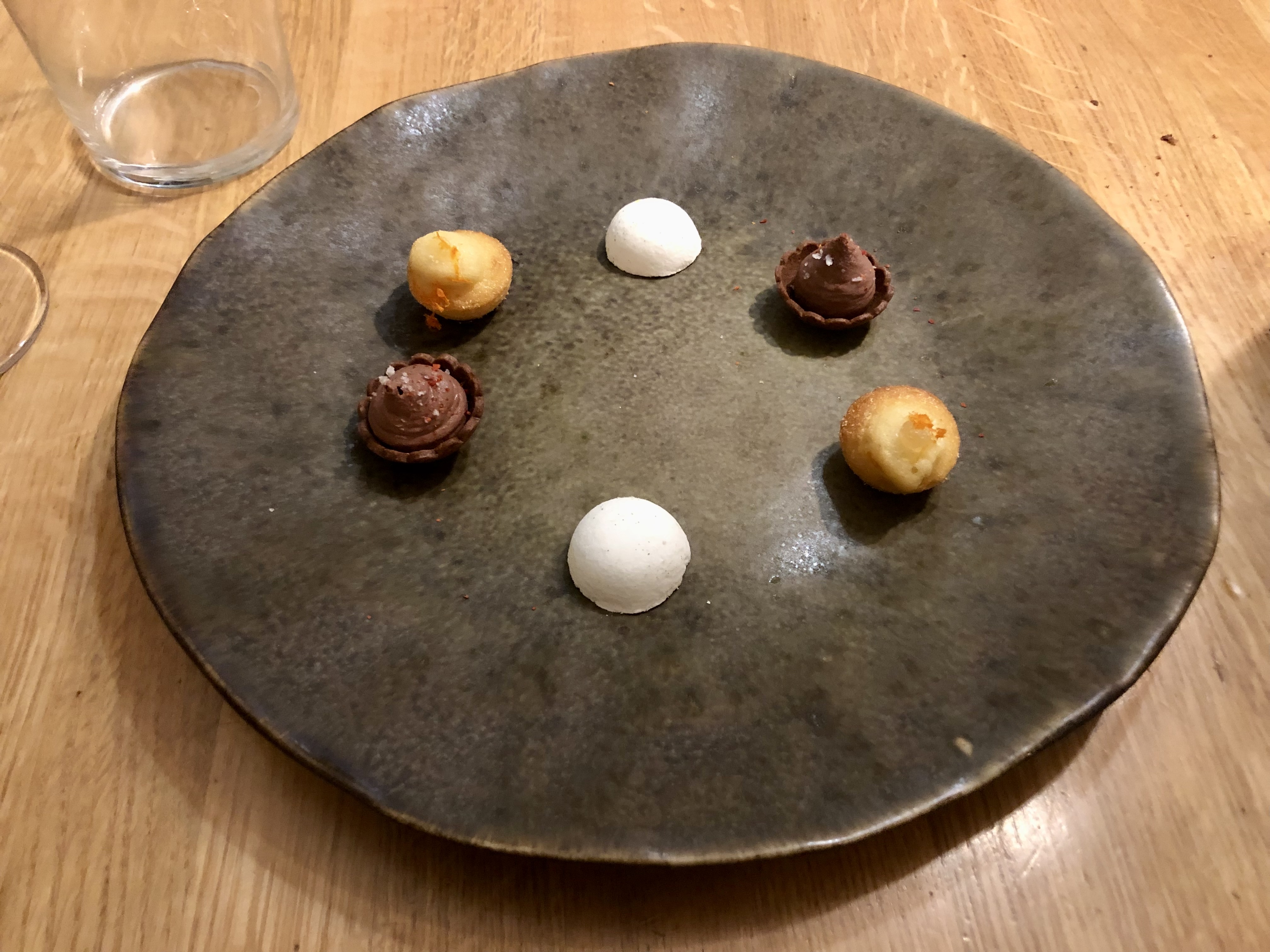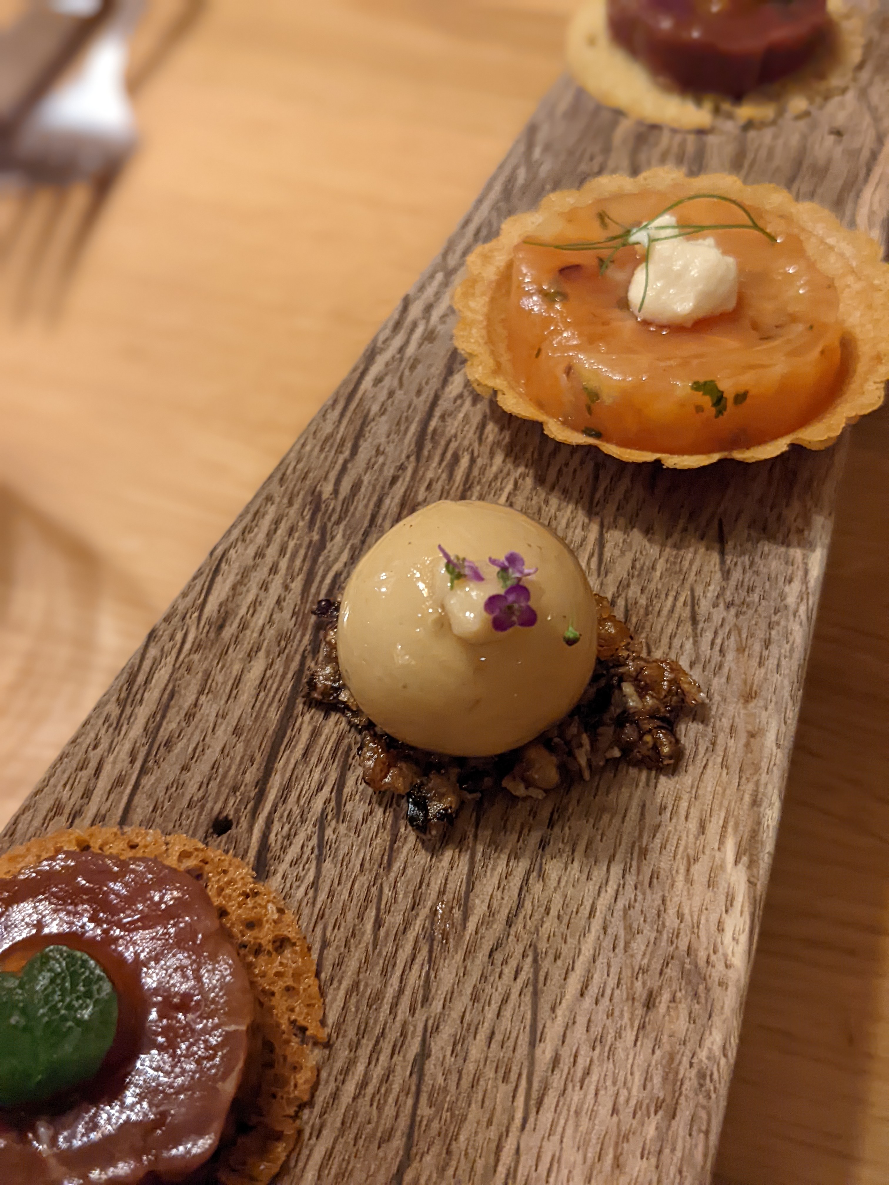 Nous regrettons l'absence de mises en bouche au cours de menu dégustation en 5 services dont un était composé de 3 lamelles de fromages et 3 demi feuilles de salade. Celles de l'apéritif sont arrivées un bon moment après la fin des verres. Quant à celles du café, après avoir attendu 5 minutes, nous avons fini par le boire tiède et les 2 petites mignardises sont arrivées encore 5 bonnes minutes après. En résumé, beaucoup trop cher pour ce que nous avons mangé.