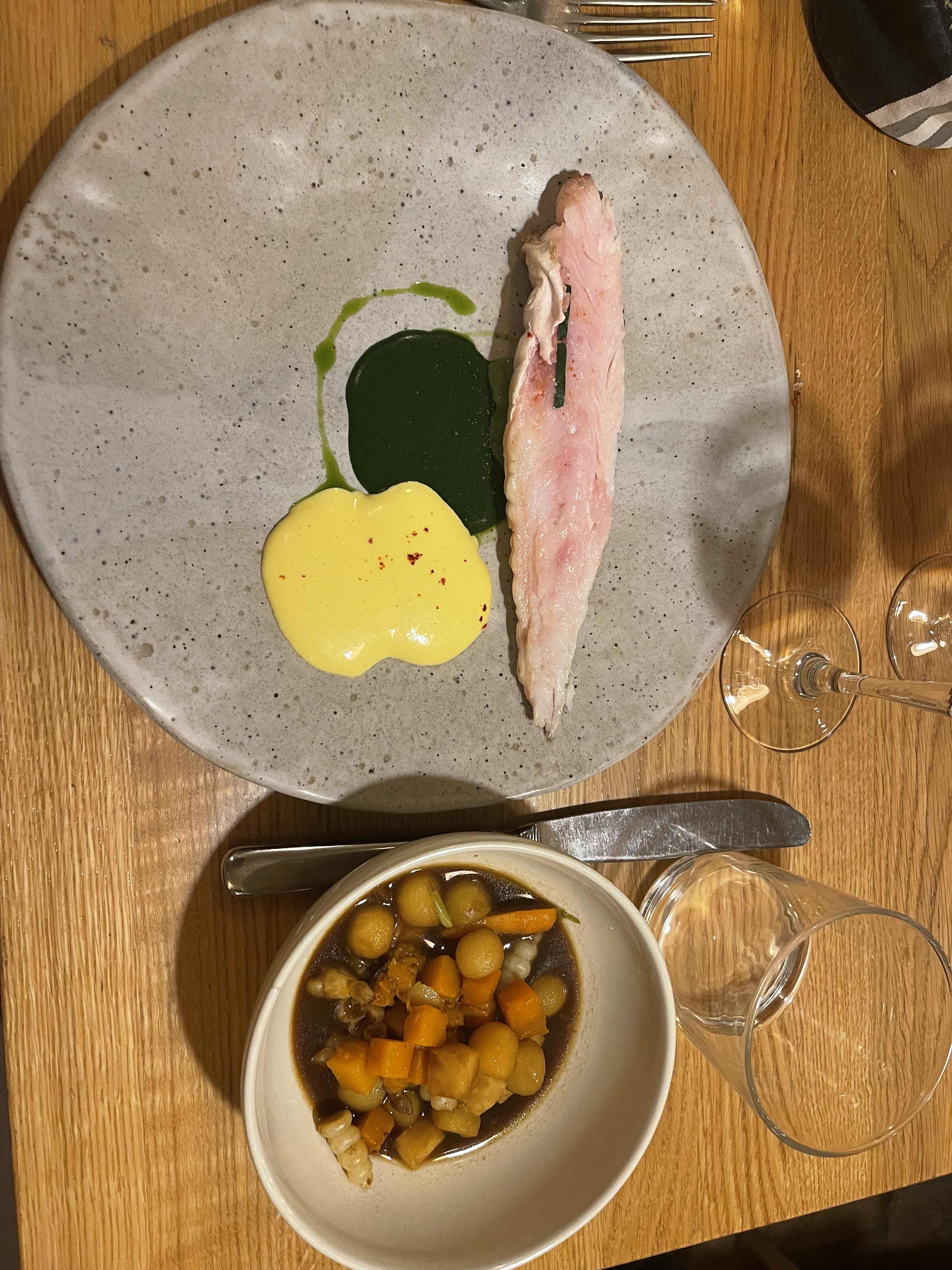 On a passé un très bon moment dans ce restaurant, ou se mêlent ingrédients terroirs, passion pour la cuisine, justesse des saveurs et ambiance chaleureuse. La décoration est soignée, nous reviendrons avec plaisir.