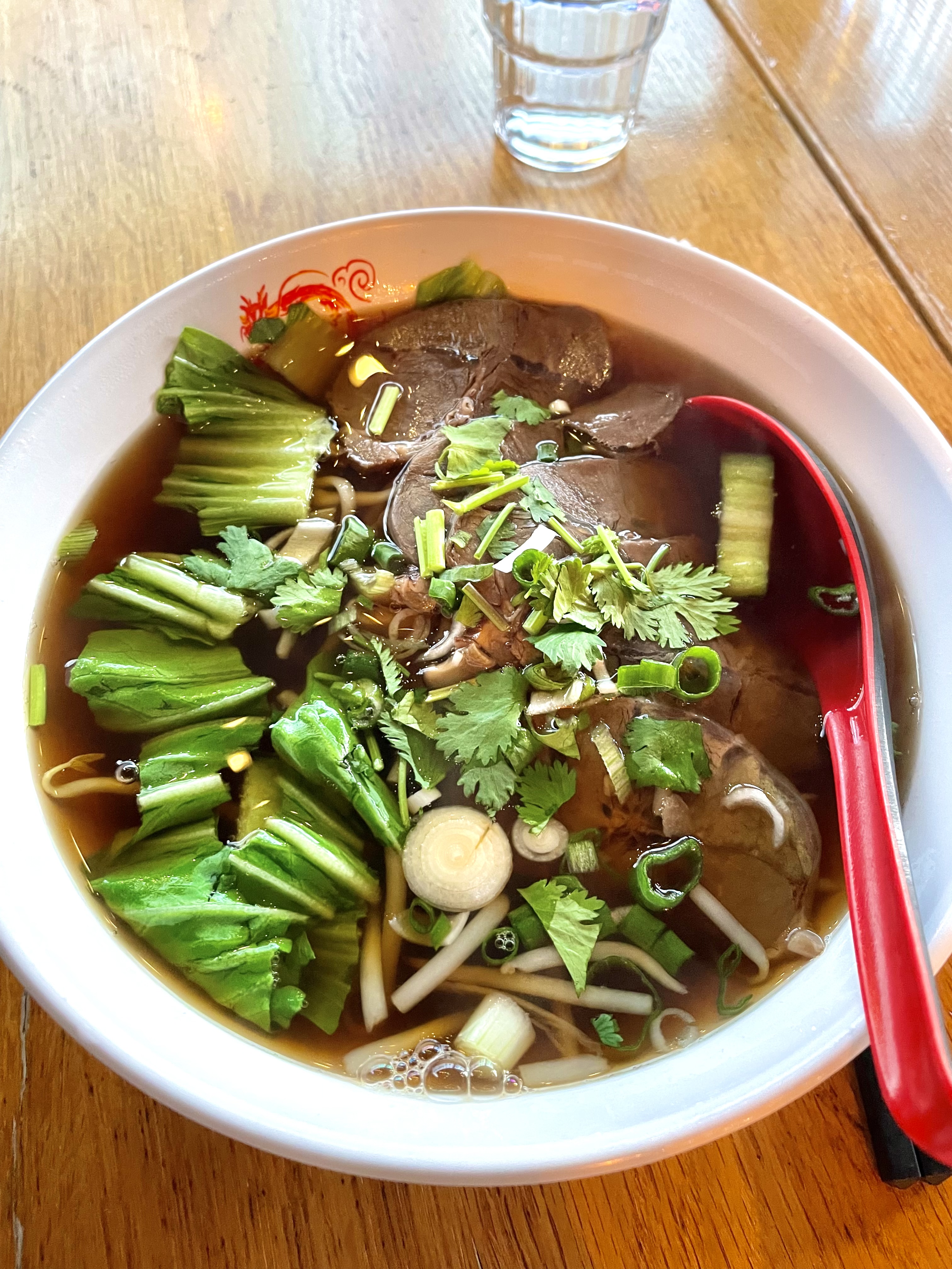J'ai commandé les nouilles au bœuf ordinaires qui devraient être le meilleur plat de soupe aux nouilles phare dans une maison de nouilles chinoises. Les nouilles sont pâteuses donc le goût est vraiment mauvais. Je m'en veux car j'aurais dû lire les critiques avant de venir - pas seulement vérifier les étoiles.