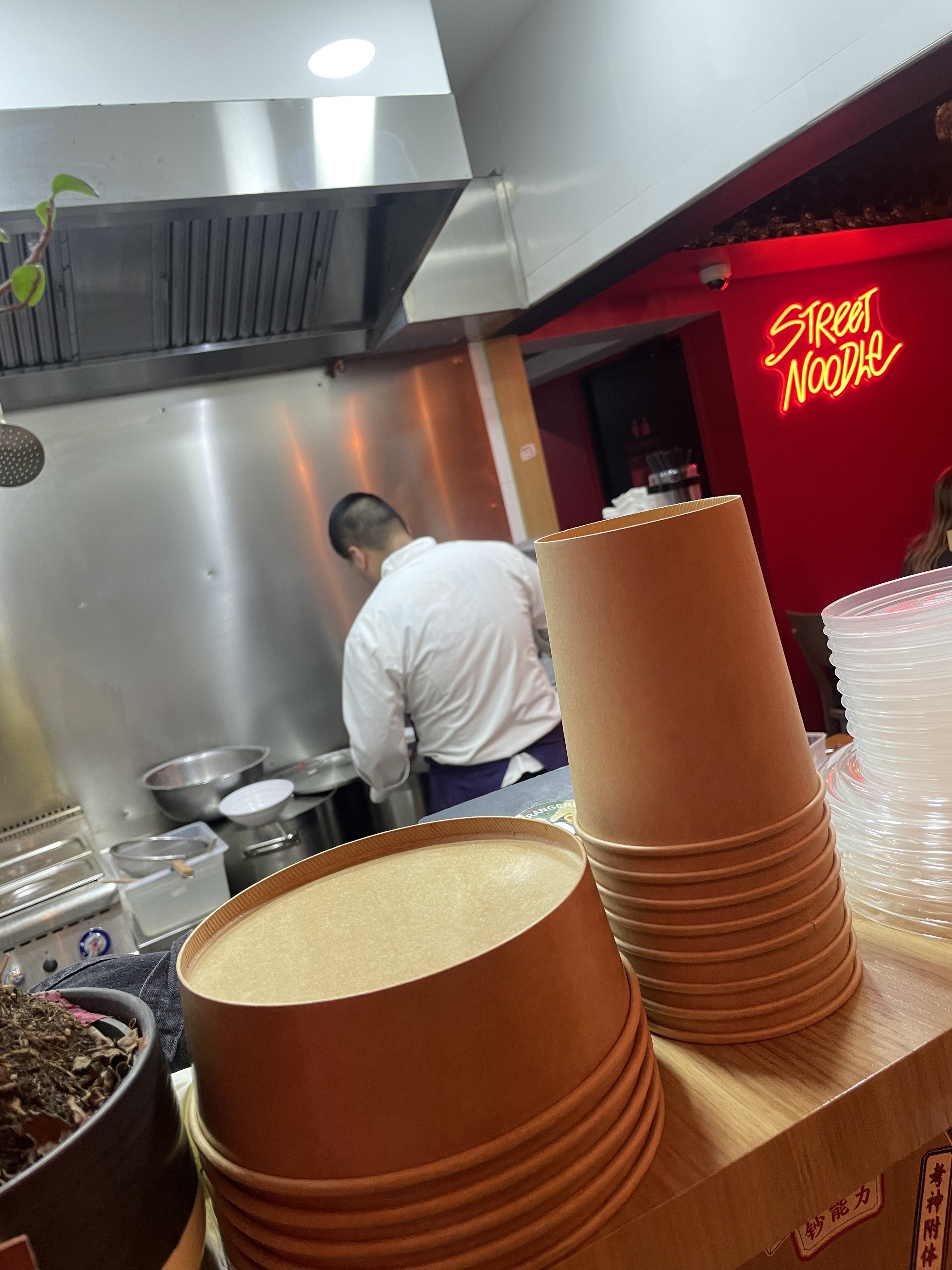 Évidemment, un restaurant de restauration rapide chinois avec des collations fusion asiatique. Mais la qualité de la soupe aux nouilles est étonnamment bonne, en particulier leur soupe de nouilles au bœuf épicée avec une incroyable huile épicée sur le dessus. Le prix est juste et l'emplacement est génial. La meilleure partie de l’expérience ici est que vous n’avez pratiquement pas besoin d’attendre !