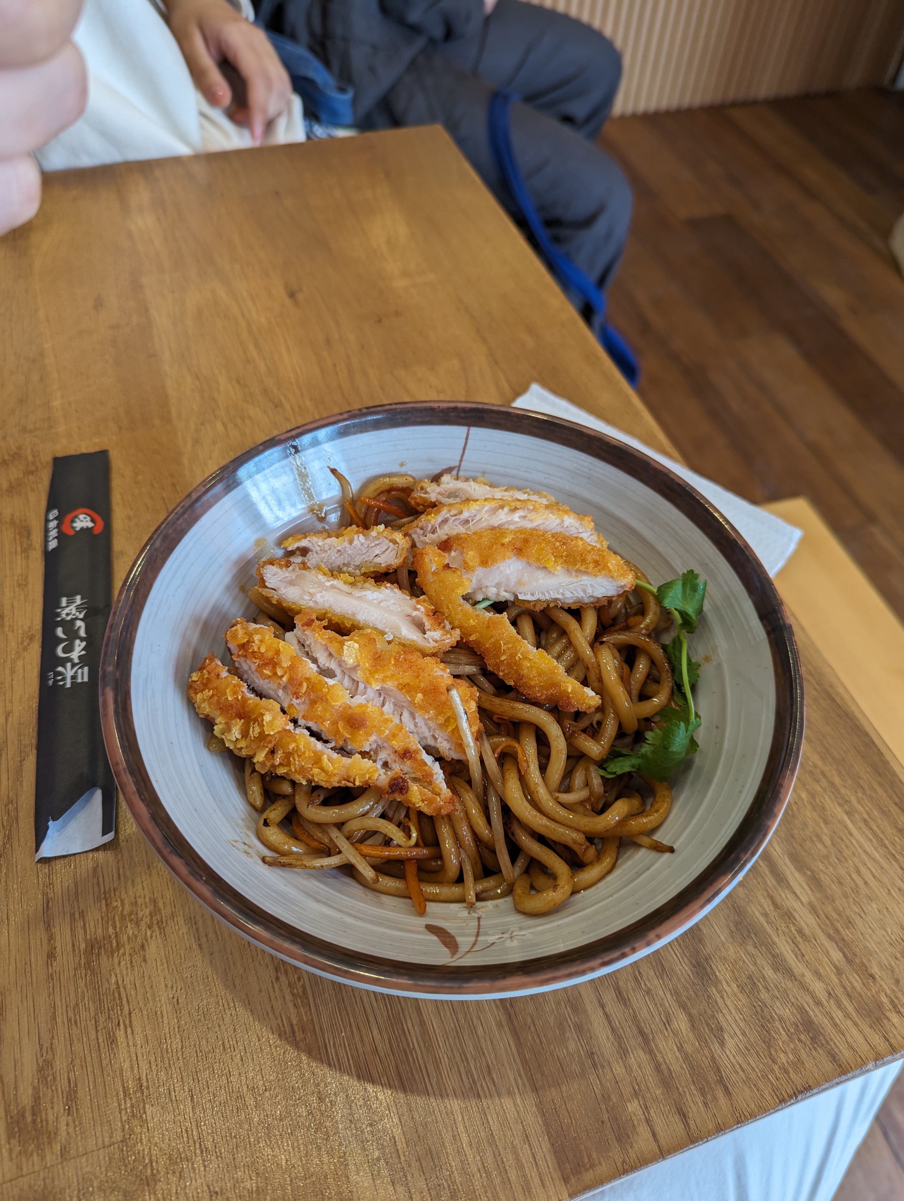 Ce poulet croustillant aux udon était cuit à la perfection ! Je reviendrai dans peu de temps.