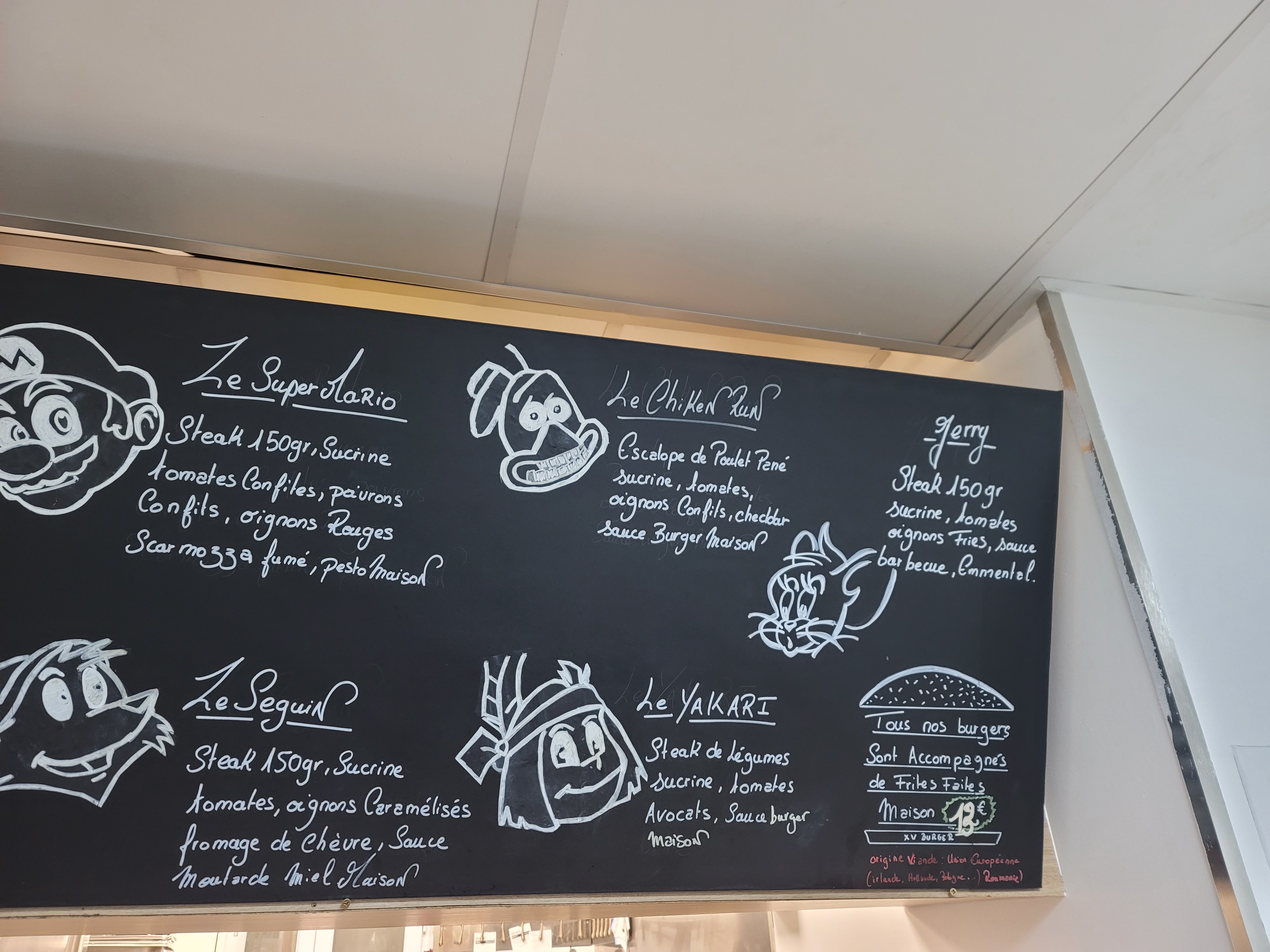 Plutôt bon, correct choix de burger. Le + : formule midi ou étudiant qui permet de manger pour 8 ou 10 euros. Le - : locaux un peu petit et qualité des burgers (on trouve mieux dans Paris) Honnête dans l'ensemble, bien pour manger le midi sur le pouce, mais pas super pour déguster un bon burger dans Paris Je vous mets le menu en photo ci-joint à l'avis