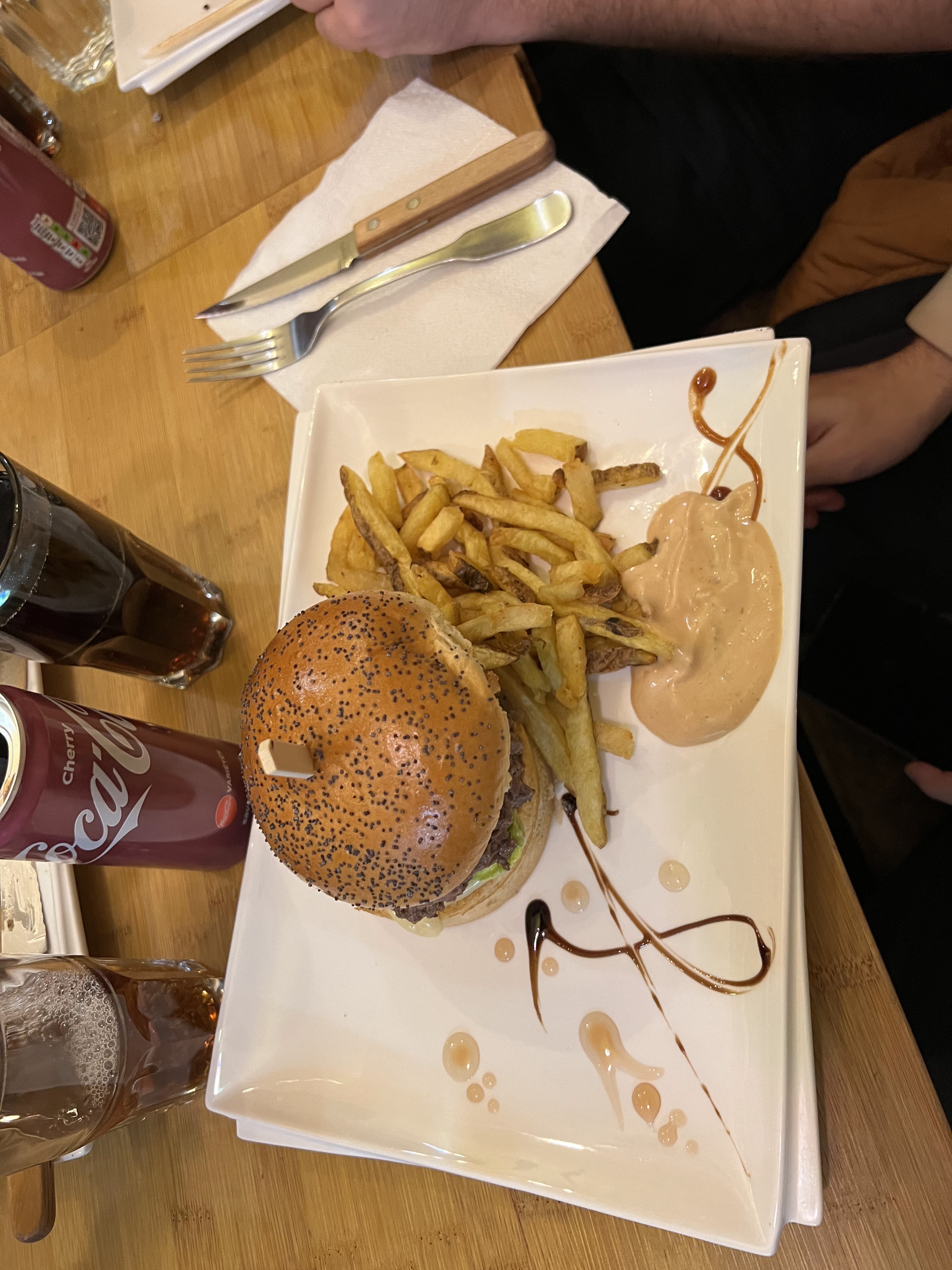 Nous nous sommes fait avoir par les avis positifs de ce restaurant. Je m’attendais à un bon Burger et je me suis retrouvée avec un Burger peu savoureux je dirais même dégeulasse. Un pain, pas vraiment brioché. Des frittes qui ne ressemblent pas à du fait maison. Bref je ne recommande pas, car le rapport qualité prix n’est pas au rendez-vous.