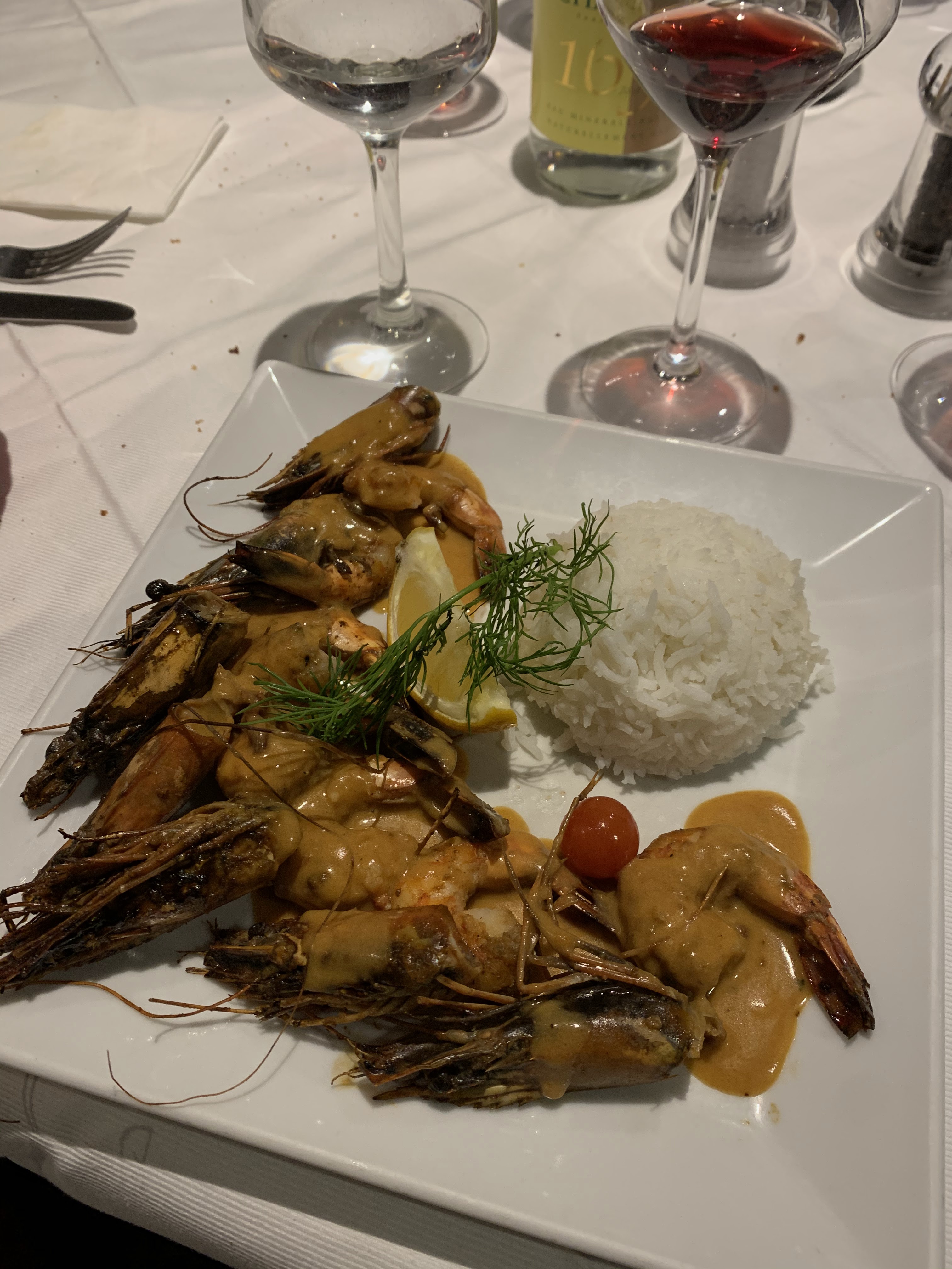 Le plat du jour était d'incroyables gambas au riz basmati ! Et les escargots étaient aussi très bons
