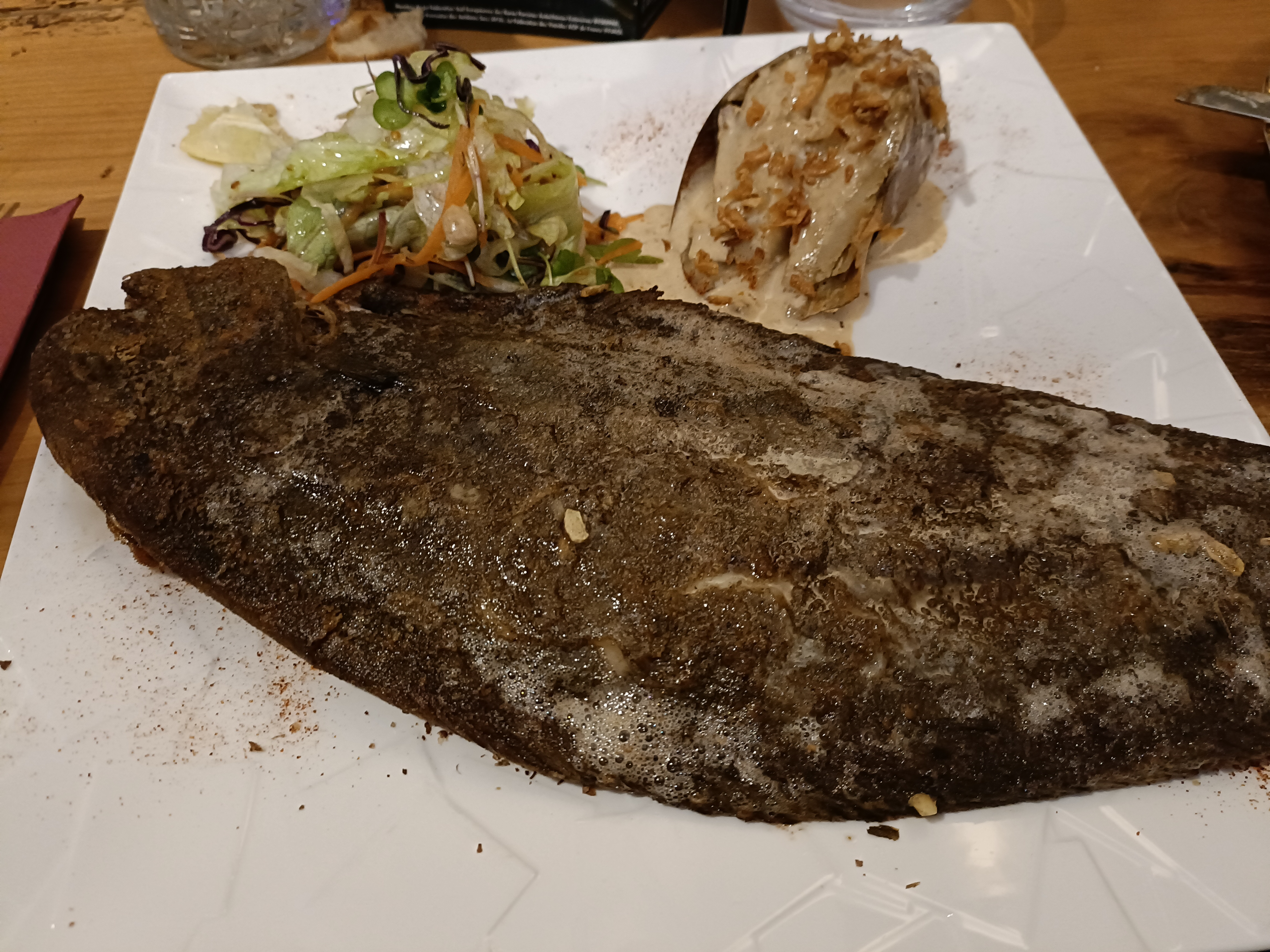 Une très bonne adresse à découvrir sans tarder ! Un cadre atypique, un accueil sympathique et chaleureux. Et dans l'assiette, un régal, de l'apéritif au dessert. Je suis réconciliée avec la langue, et ce n'était pas gagné 😉.