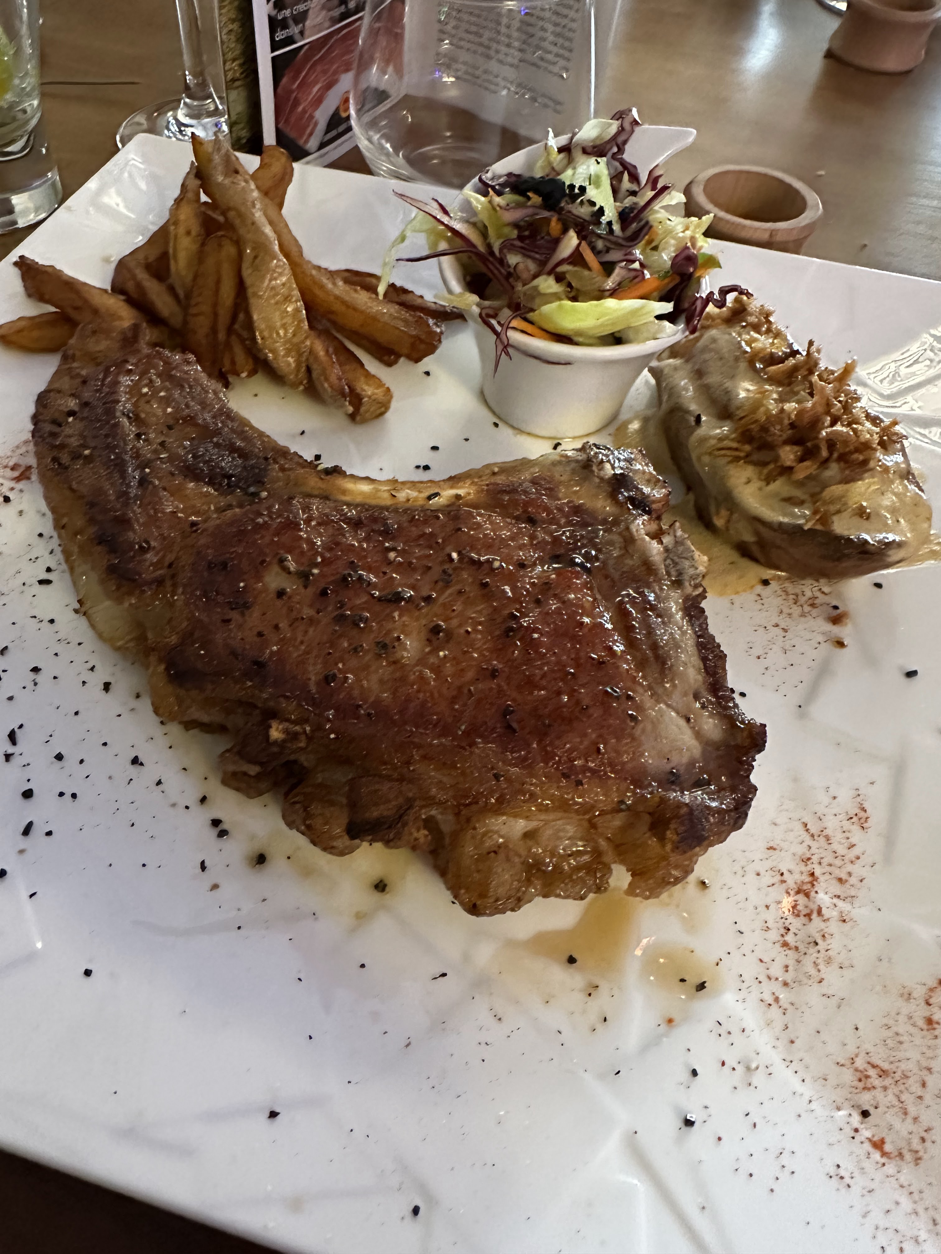 Un restaurant avec beaucoup de qualités ,des produits frais excellents avec une trilogie, frites, salade, légumes qui accompagnent le porc noir de Bigorre. Un régal !