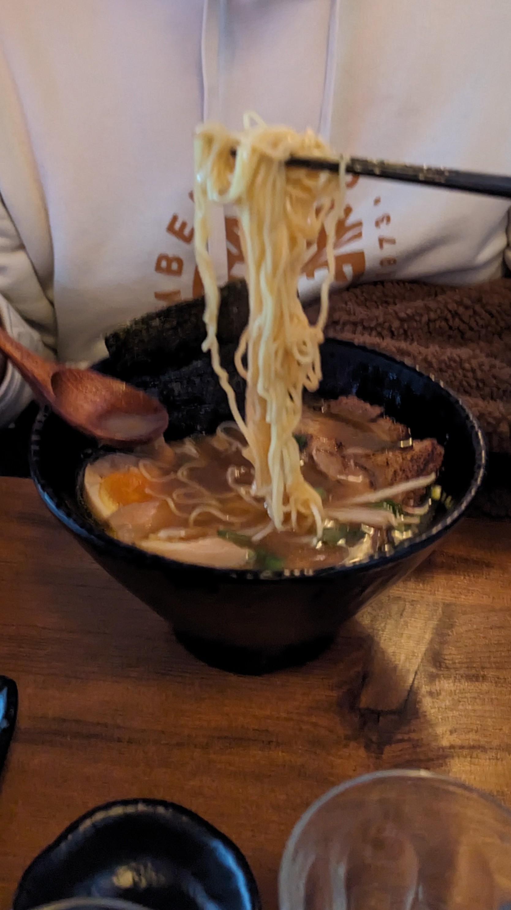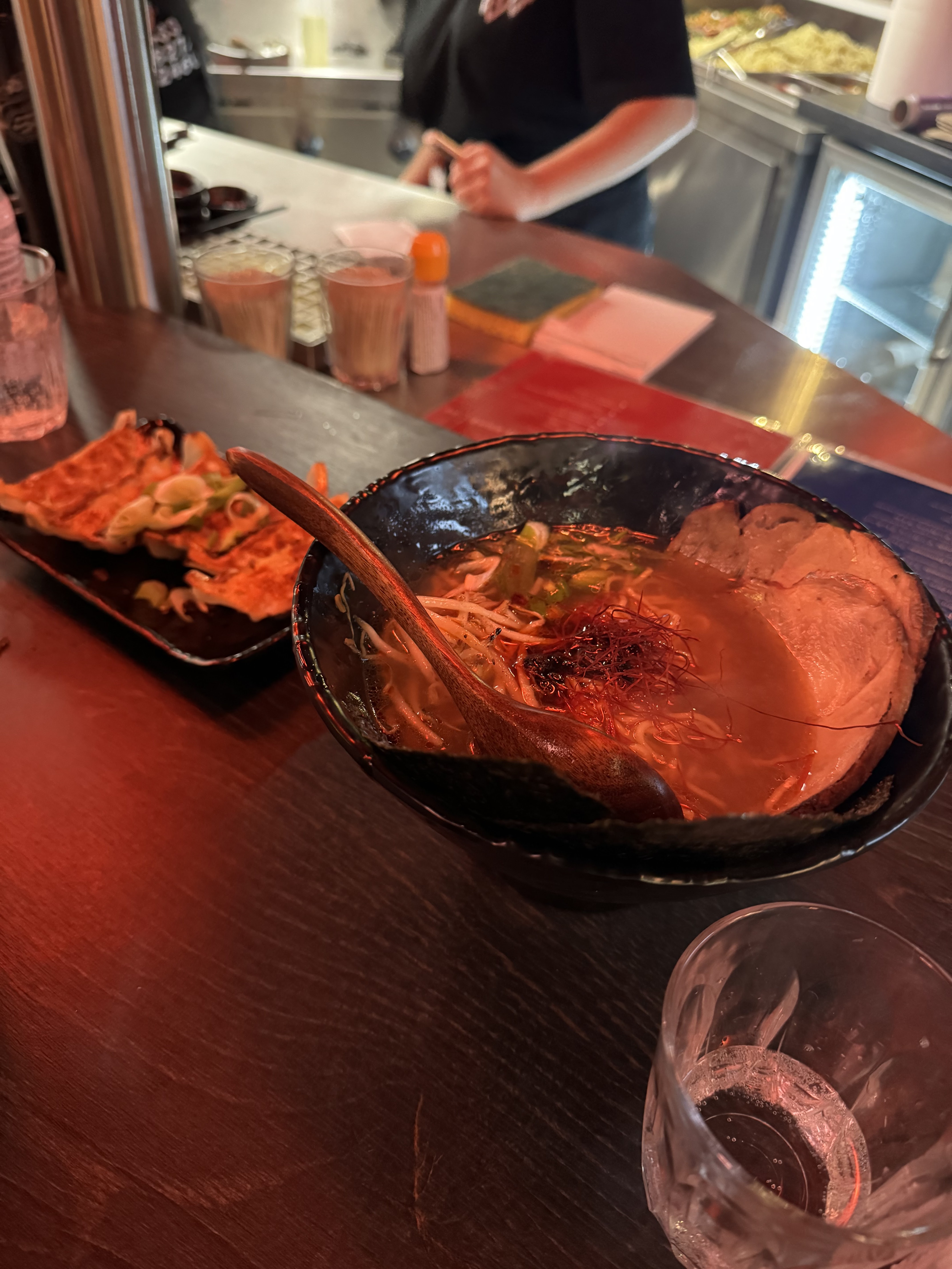 On a découvert ce restaurant sur insta. L’ambiance et les décors sont top, le service était rapide et les employés très agréables. Par contre nous étions assez dessus du ramen tonkostsu dont le bouillon n’avait pas beaucoup de goût, les gyozas ne nous ont pas convaincus non plus. Ce n’était pas mauvais mais ça manquait de goût selon nous. Par contre les yakisoba étaient bien meilleur que le reste! Je recommande ce plat. Assez déçu quand même par le bouillon du ramen…